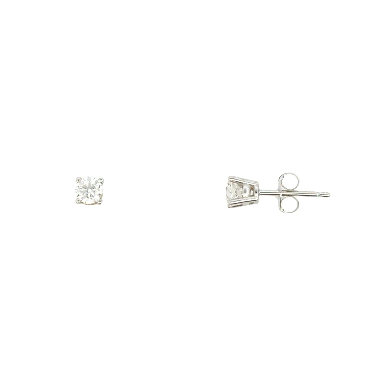eye-catching earrings for every occasion. Classic diamond stud earrings featuring 0.40 total carats of natural round brilliant cut diamonds. Each diamond is securely held in a traditional four-prong setting that maximizes light reflection and brilliance. Crafted in 14k white gold (1.00 grams) with reliable post and butterfly back closures for comfortable, secure wear. These timeless studs offer elegant sparkle perfect for everyday wear or special occasions, making them an essential addition to any jewelry collection. Key Features: 0.40 total carat weight natural diamonds. Round brilliant cut diamonds. 14k white gold construction (1.00 grams). Four-prong setting. Post and butterfly back closures. Perfect for everyday wear or special occasions.