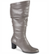An asymmetrical topline and casual slouching pair with a chic rectangular heel on the fashion-forward Tessla dress boots by Easy Street.| 2-1/2 block heel| Shaft height; 14-1/4; Circumference; 15-1/2; measured on a size 9| Round-toe dress boots with zipper closure| Slouching at shaft| Cushioned padded insole| stretch and Easy Flex outsole for added comfort