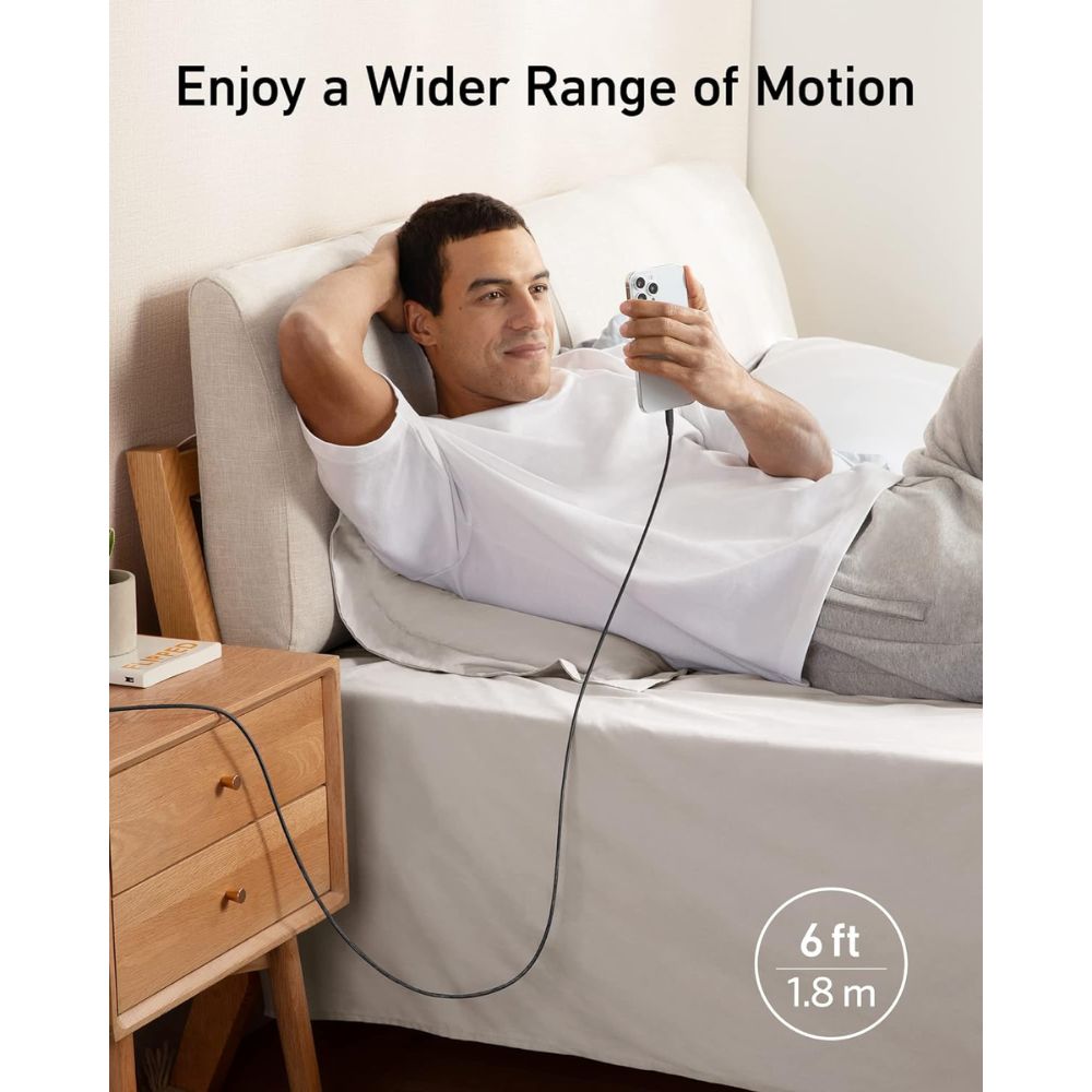 10-foot long cable | Durable Lightning Connector | Fast Charge Capability | Flexible; Tough Coating | USB-A Compatibility | Enhanced Durability | MFi Certified | Matte Finish Design | High-Speed Data Transfer | Extended Reach