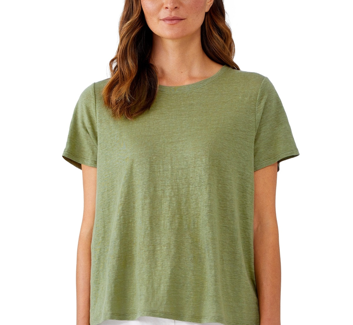 Color your world with this Eileen Fisher top| a relaxed silhouette in organic linen and stylish tones.| Approx. length; 25| Crewneck| All organic linen| Machine washable| Imported