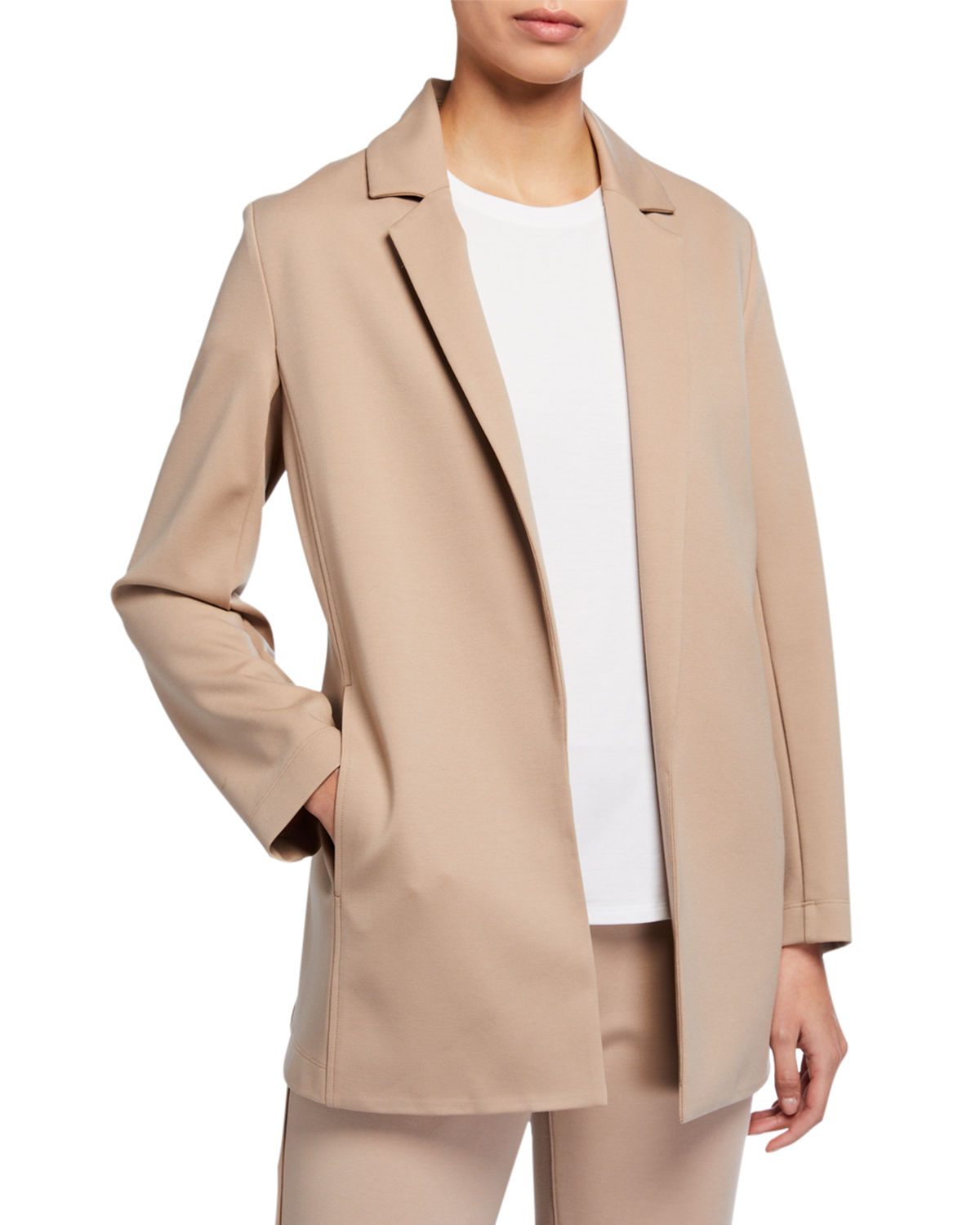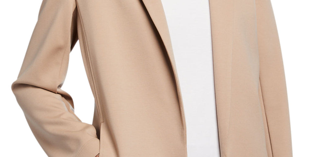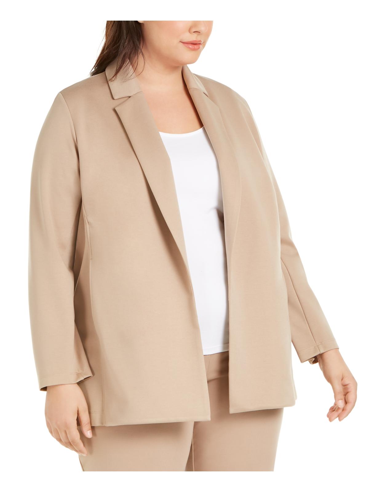 Eileen Fisher Women's Pocketed Notch Collar Back Vent Long Sleeve Wear to Work Jacket Beige Size 2X
