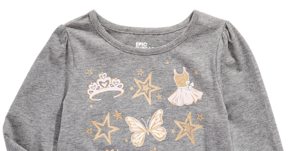Epic Threads Kid's Little Girls Ballet Crown Long Sleeve T Shirt Gray Size 5