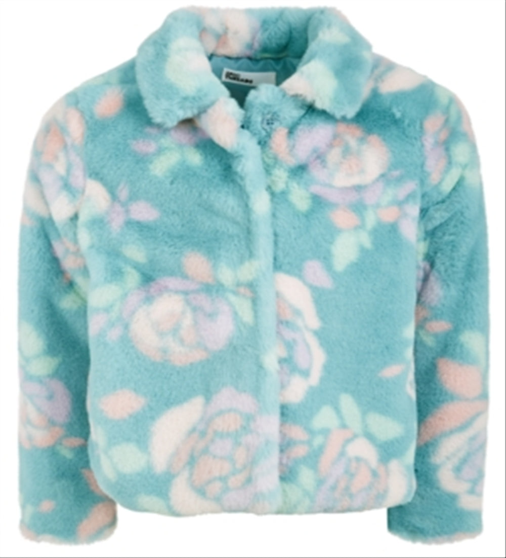 Epic Threads Toddler Girl's Floral Print Faux Fur Jacket Blue Size 3T