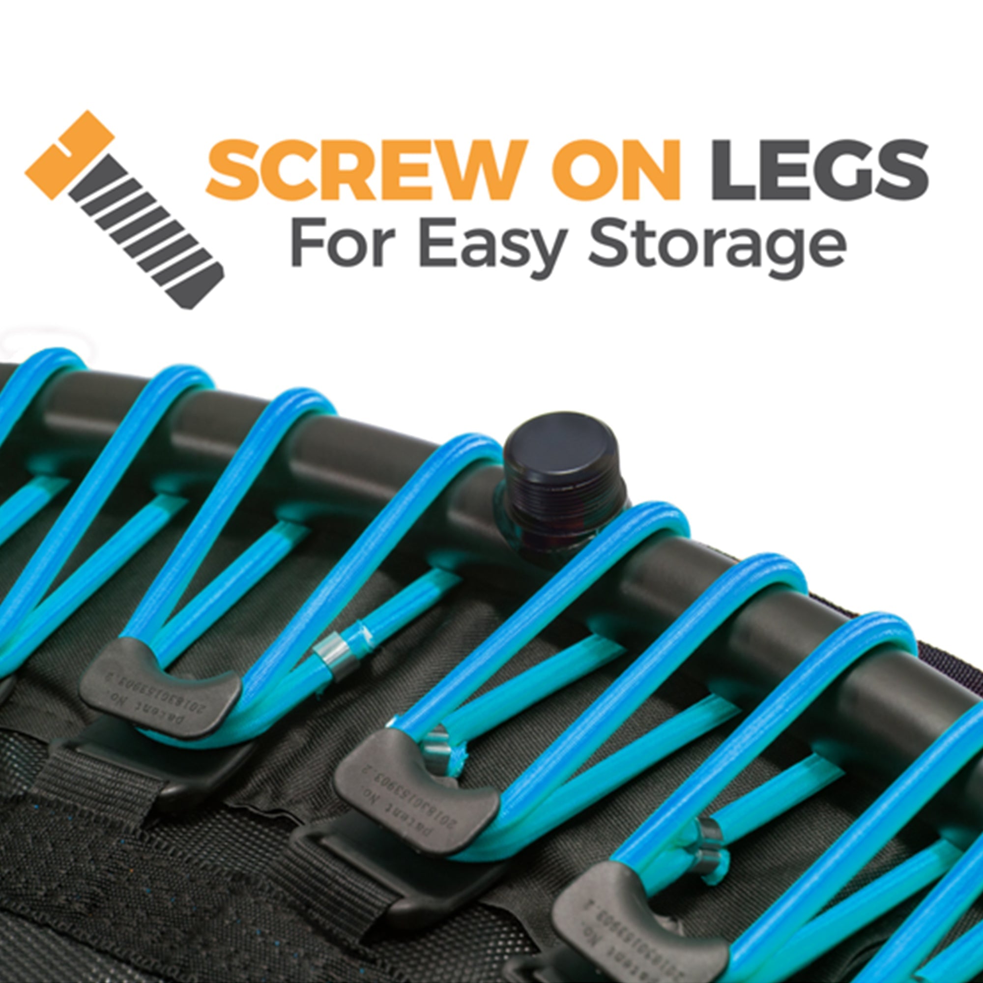 - Carbon steel frame with threaded legs allows you to twist the legs on and off for compact storage and easy transport