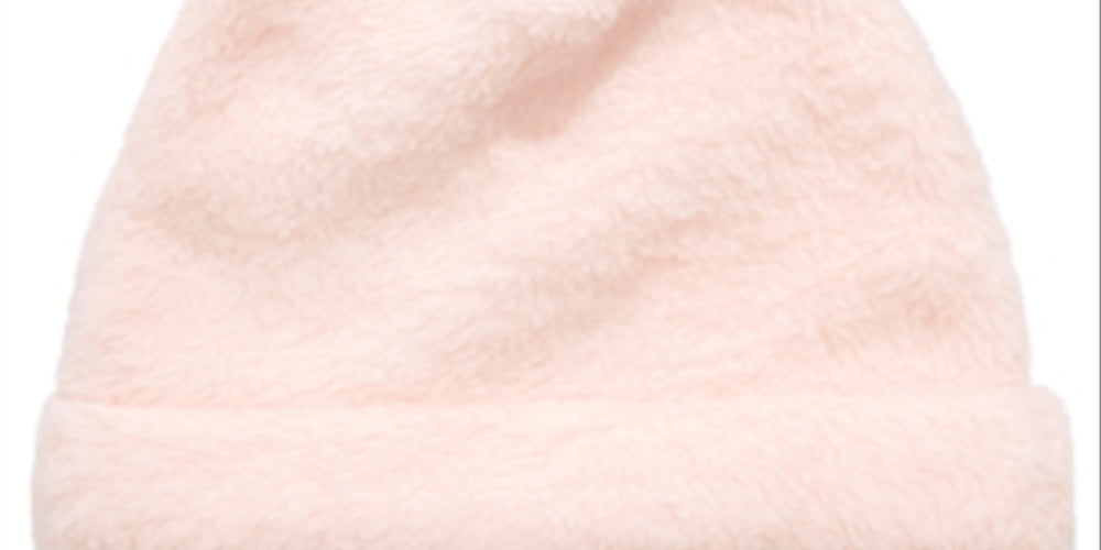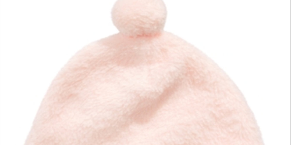 topped with a sweet pom pom| this fuzzy faux-sherpa hat from first impressions keeps baby snuggly warm