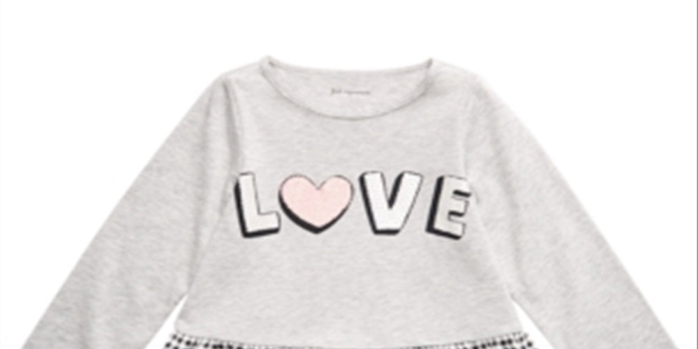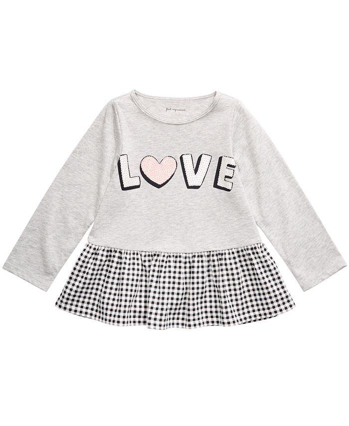 Round neckline| 'LOVE' graphic print at front; gingham print peplum hem| | Cotton/polyester| Machine washable| Imported