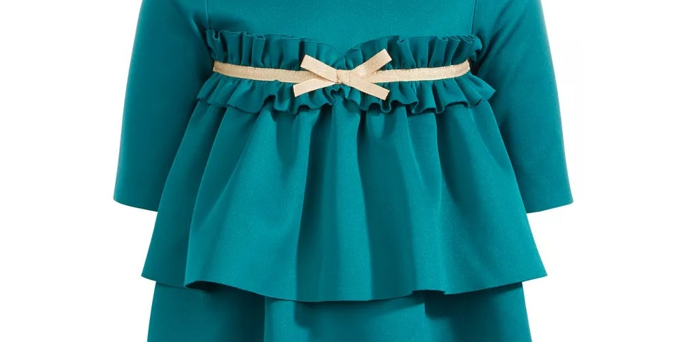 First Impressions Baby Girl's Scuba Ruffled Bow Dress Green Size 18 Months