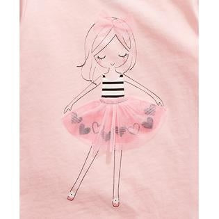 Round neckline|Ballerina girl with tutu at front|All cotton|Machine washable|Imported
