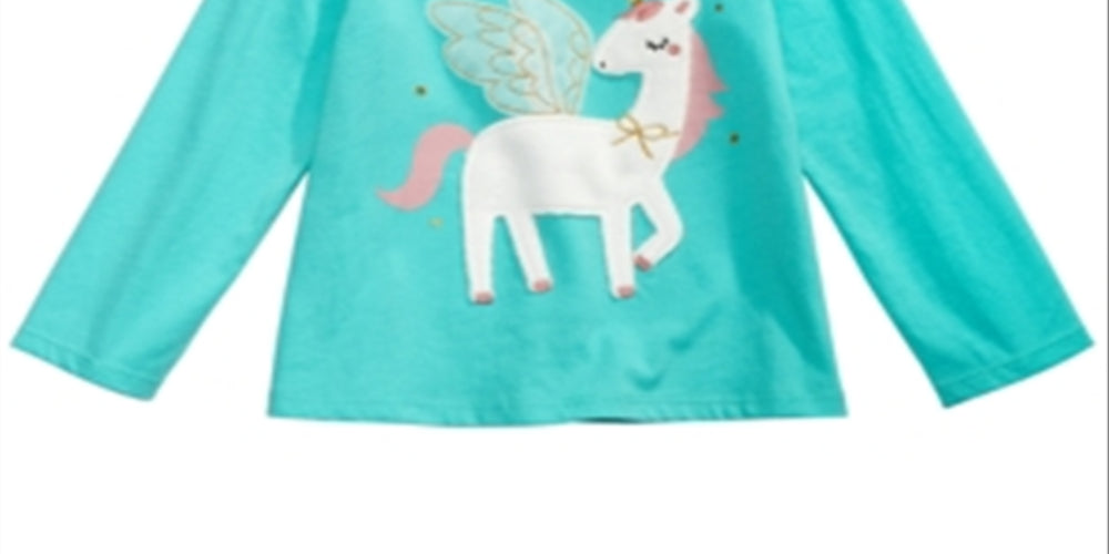 First Impressions Baby Girl Unicorn Print Tee|Size; 6-9m 26.5-28/17-22lbs // 12m 28-30/22-25lbs|Color; sea serpent|Long Sleeve|100% Cotton|Body Length; 6-9m 11.5in / 12m 12.25in approx.|items must be returned in original unused conditions with tags attached