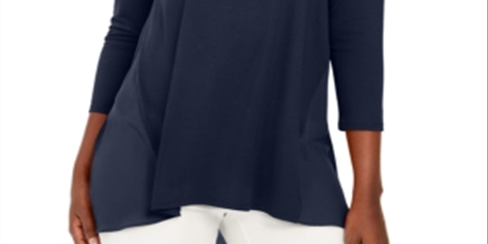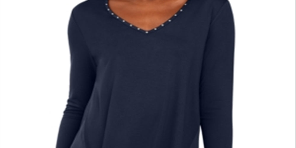 JM Collection Women's Mixed Media Studs Top Blue Size X-Small