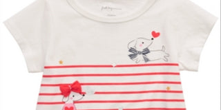 First Impressions Baby Girl's Dog Print Striped T-Shirt White Size 6-9 M