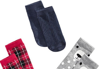 First Impressions Baby Plaid / Grid / Bear 3 Pair Socks Red Size 12-24