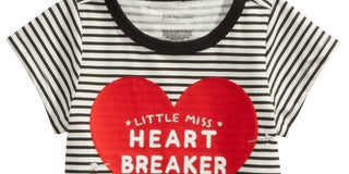 First Impressions Kid's Baby Girls Striped Heartbreaker Print Cotton T-Shirt White Size 3-6