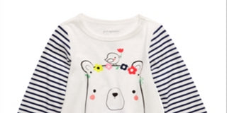 First Impressions Toddler Girl's Cotton Striped Bear T-Shirt White White Size 2T