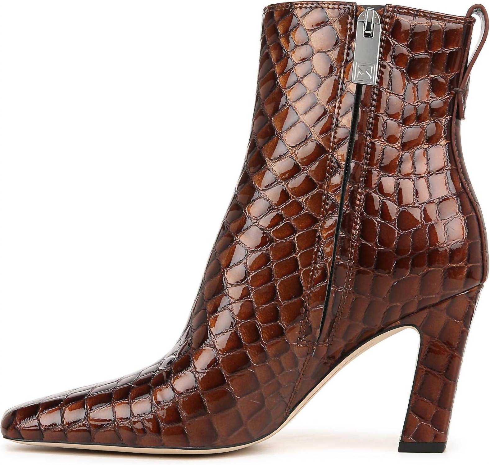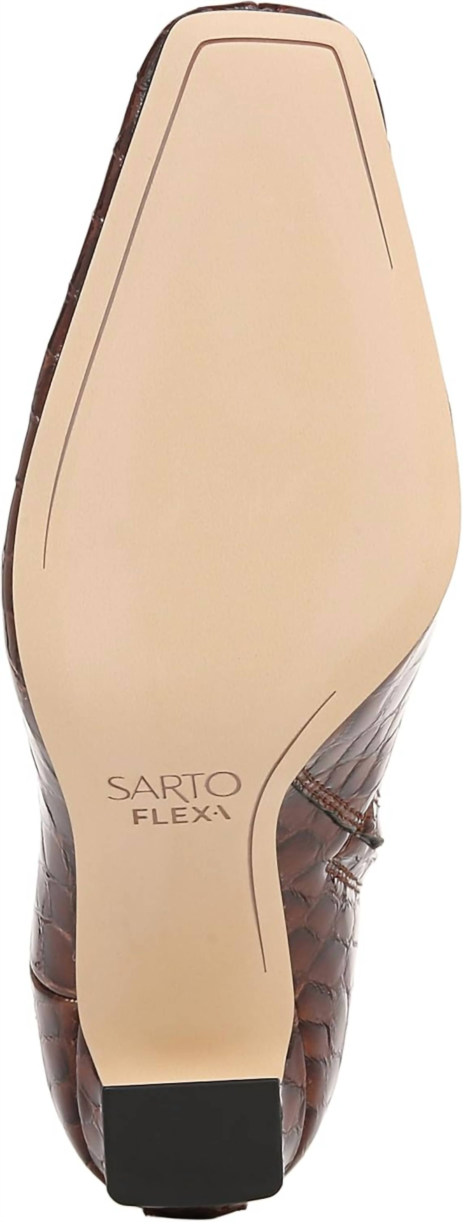Say hello to the perfect, most versatile boot. The ankle height makes this style easily transition from day to night. Wear them with your favorite skinny jeans and tee for a more laid back look, or pair them with your favorite mini dress and jacket for a night out on the town. Introducing the Flexa Bliss Ankle Boot by Franco Sarto, designed to elevate your style with sophistication. Crafted with a responsibly sourced leather and fabric upper, this brown ankle boot features a chic 3.4-inch cone heel and a trendy squared toe. It includes a practical pull tab for easy slip-on with side goring and a convenient zipper closure. Perfect for the spring season, these boots are an impeccable choice for engagements or any stylish occasion.