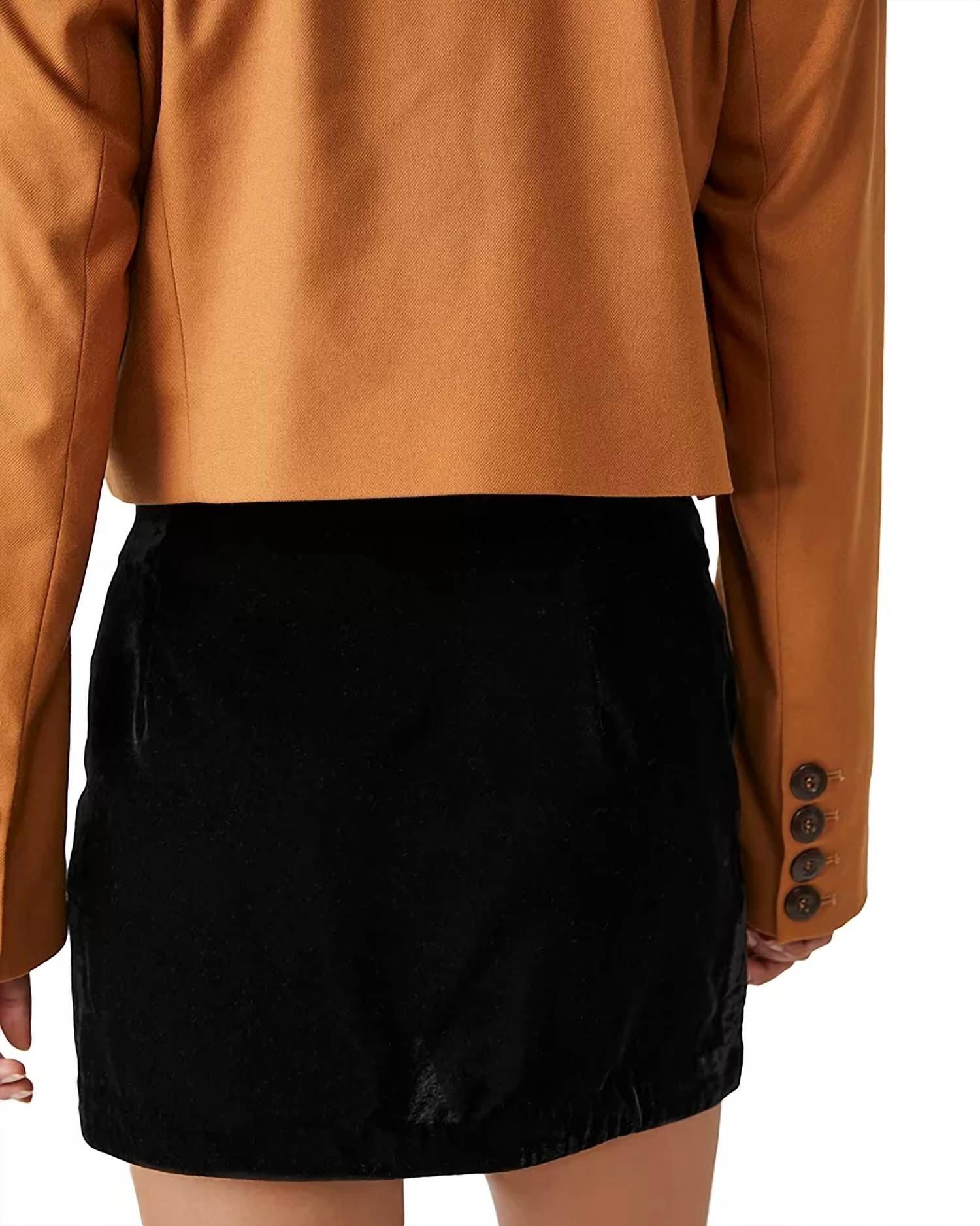 Concealed zip closure. High waist. Curved hemline. Textured velvet fabrication. Left hem side notch.