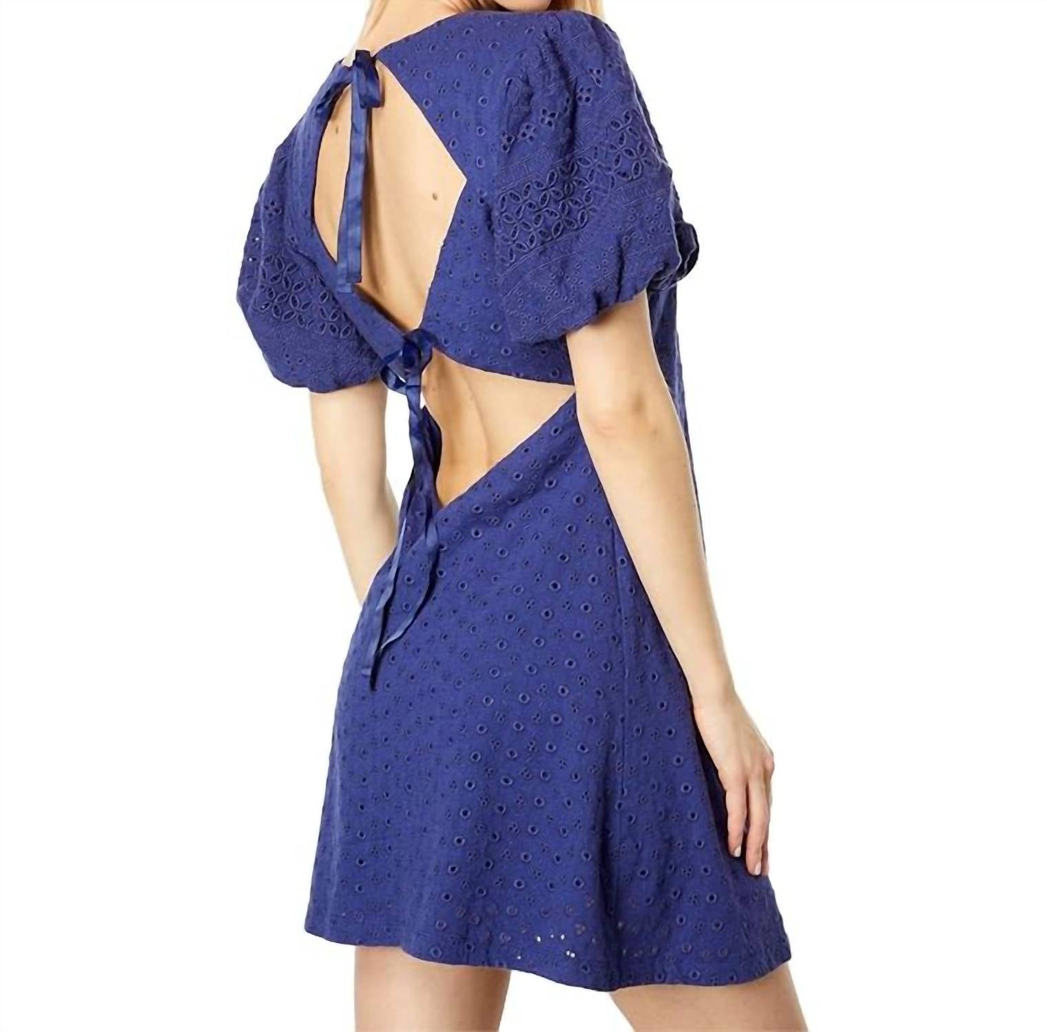 Unveil a touch of romance with the Apricot Rose Mini Dress by Free People, an exquisite blend of elegance and charm. This beautiful blue dress features a jewel neckline and puffed short sleeves, adorned with intricate lace detailing throughout. Crafted from 100% cotton for ultimate comfort, it boasts a mid-thigh length hem measuring 33¾ inches and a sleeve length of 9¾ inches. Originating from imported craftsmanship, its tie closures on the back add a delicate finish, and it's easy to care for with machine wash and tumble dry instructions. Perfectly constructed in an A-line silhouette, this dress encapsulates sophisticated femininity.