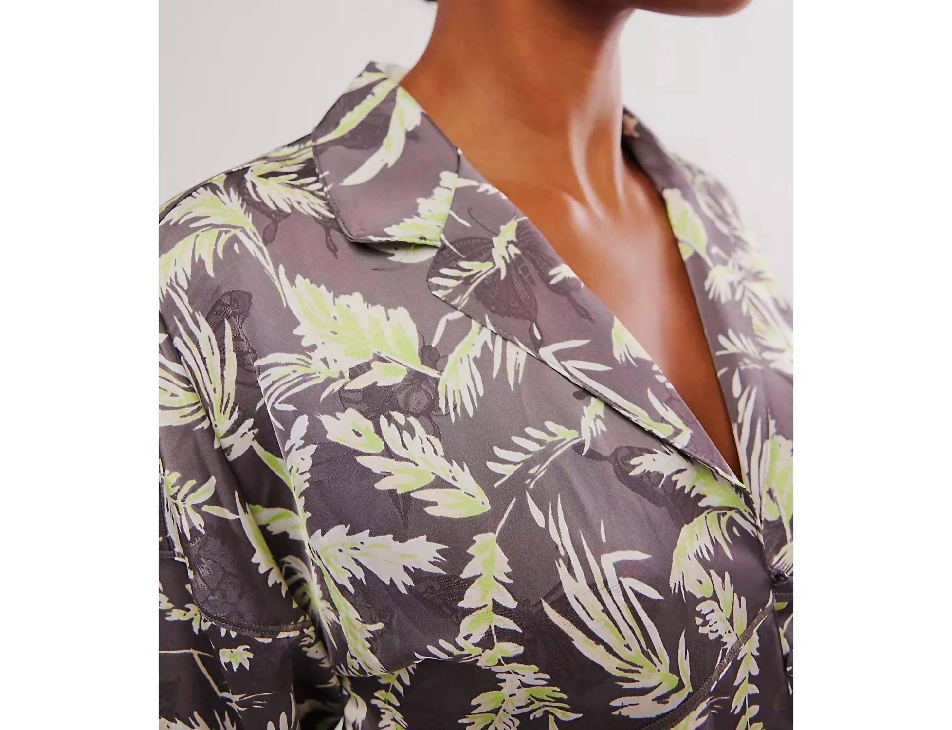 This Beauty Sleep Pajama Set includes a cropped long-sleeve button-down top with a V-neckline and peplum, and matching pull-on shorts with an elastic waistband. Made from silky 100% Polyester, it offers comfort and elegance for restful nights.