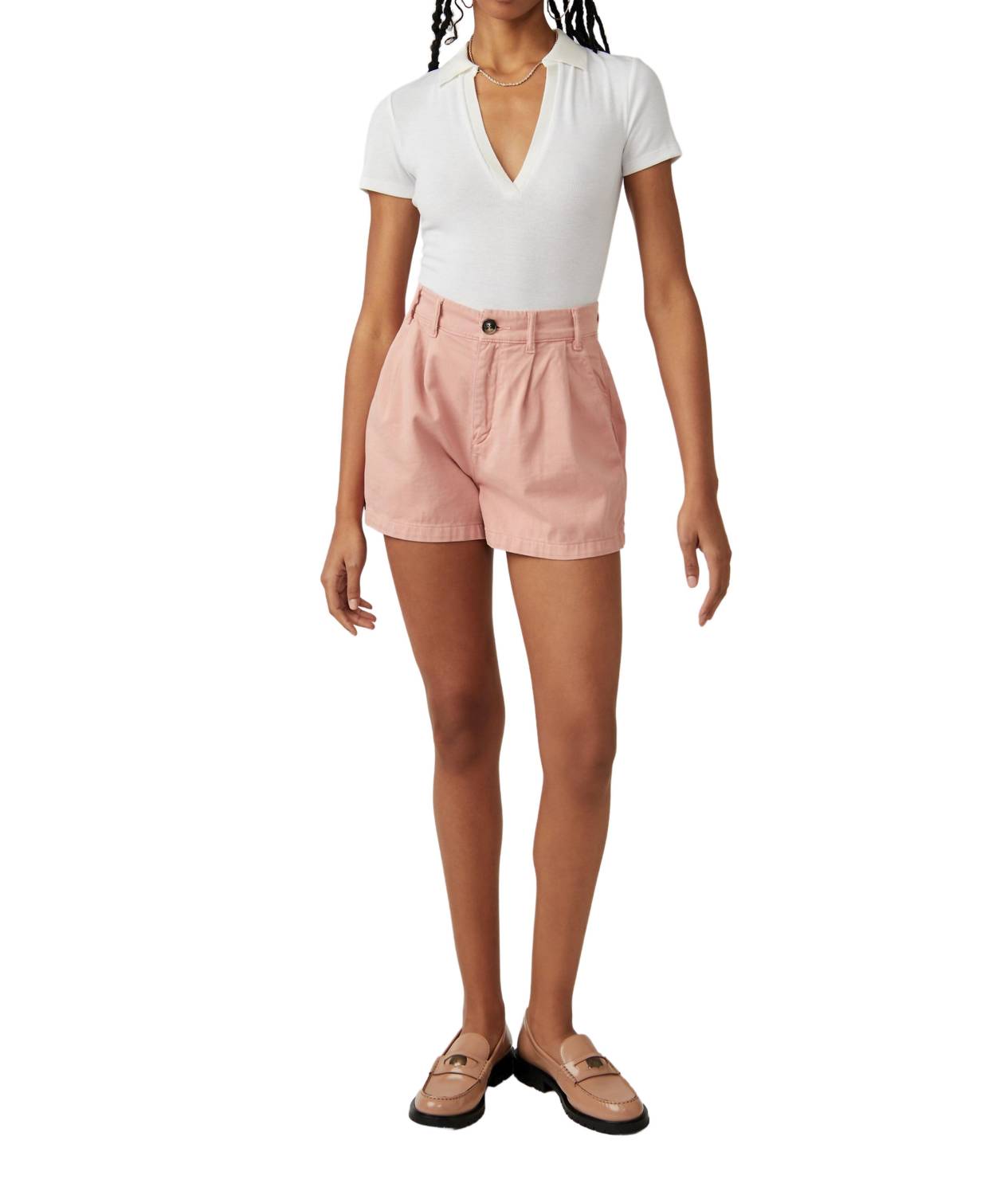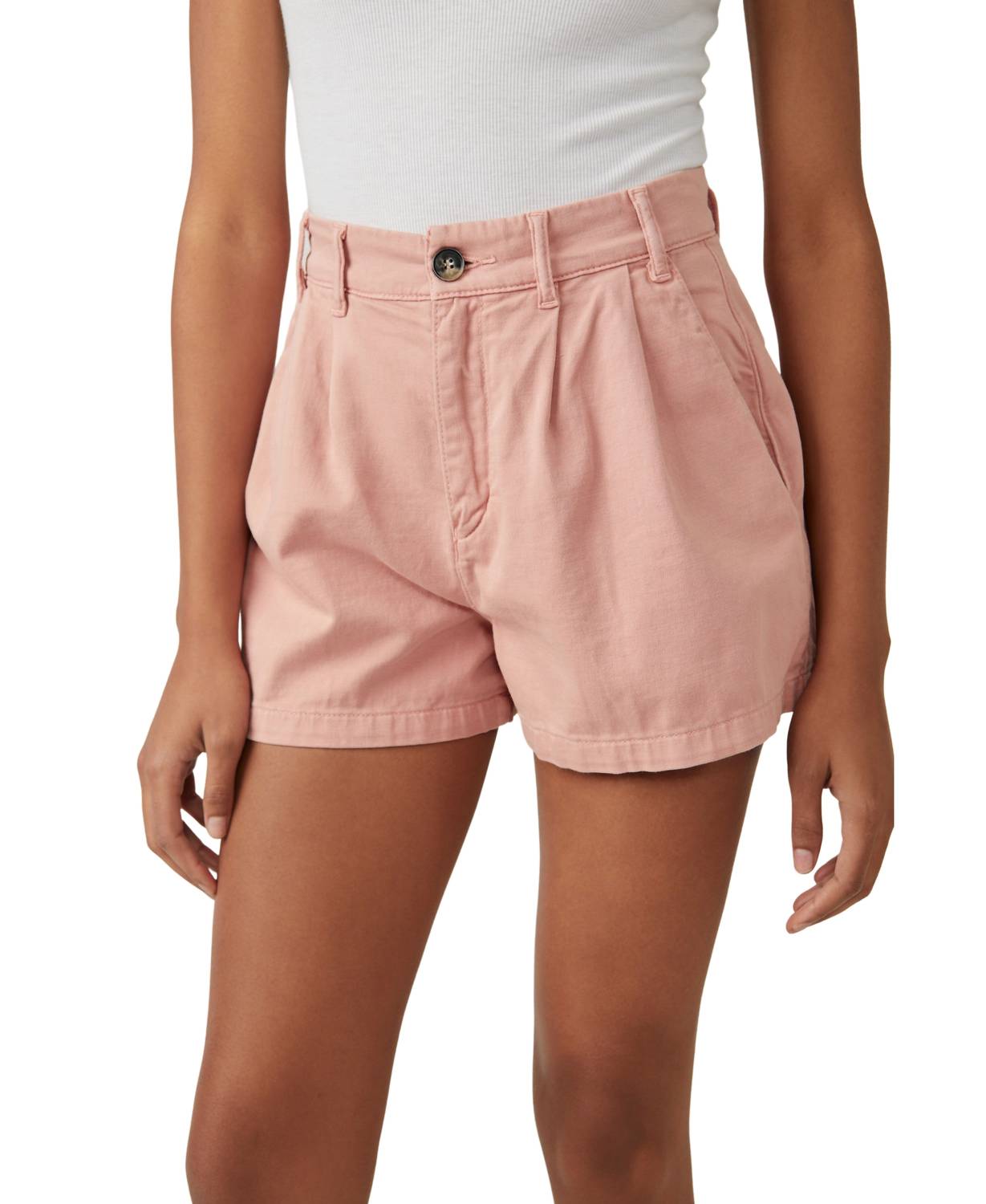 Menswear-inspired and oh-so classic, these chill chino shorts give an effortless sophistication to any outfit. Relaxed, mid-rise fit and structured trouser silhouette. Features: So soft cotton fabrication, four-pocket design, zip-fly and button closure, front pleats. Measurements for size 6 [Waist: 32.5 in, Inseam: 2.75 in, Rise: 13.5 in, Hips: 40.5 in]