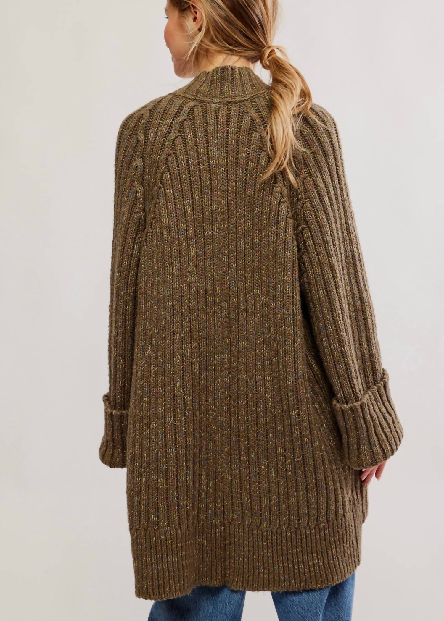 A classic fit that works just as good buttoned as it does left open. Introducing the Blossom Cardigan by Free People, a must-have for every fashion-forward wardrobe. This cozy piece comes in an Ivy Earth Combo color and features a slouchy, oversized fit with long raglan sleeves that end in cuffed sleeves. Made from soft cotton with a textured ribbed knit design, it boasts an open-front silhouette and oversized patch pockets for added style. Care: Machine wash cold and lay flat to dry. Dimensions for size small: Bust 48 in, Sleeve 30 in, Length 29.5 in.