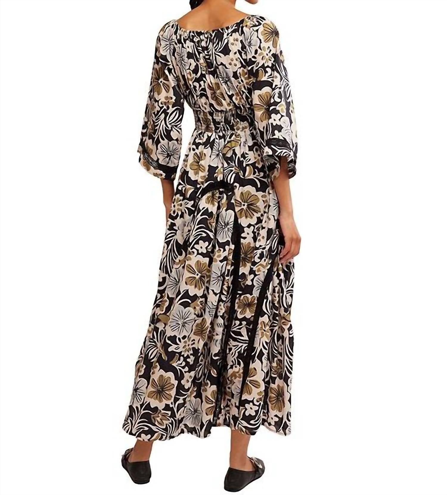 A maxi dress that is just as cute as it is comfortable. Introducing the Bodhi Floral Printed Maxi Dress by Free People, a striking piece in a Dark Floral Combo designed for those who love to make a statement. This women's dress features wide three-quarter sleeves with lace detail, a plunging V-neckline, and a hidden pocket detail, all wrapped in a striking floral print. Composition: 100% Cotton. Closure: Pull-on style. Care: Hand wash. Approximate length is 51.25 inches, perfect for an elegant A-line silhouette.