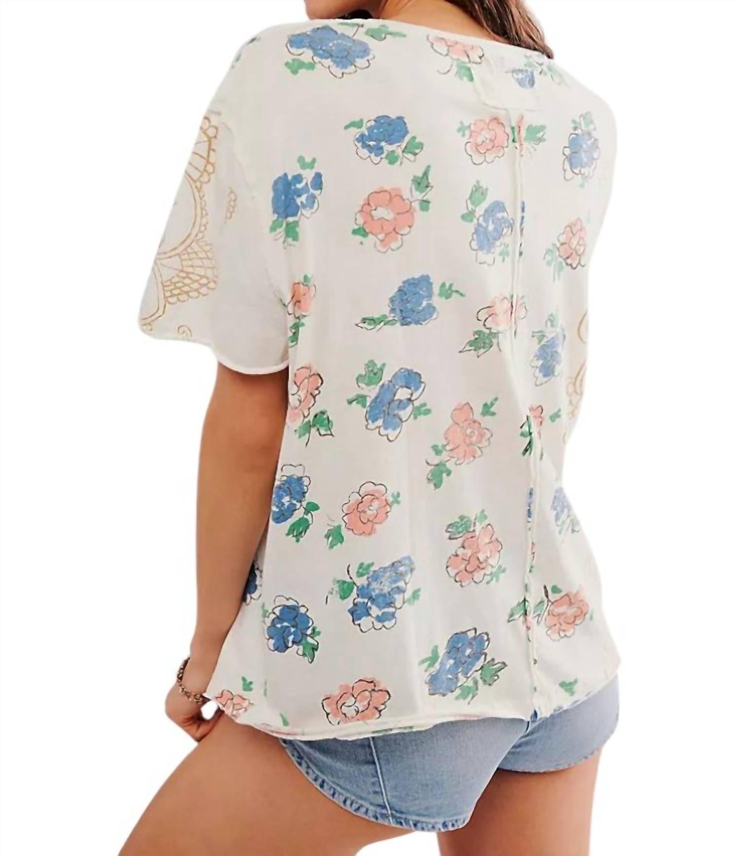 Combines comfort with effortless style. Crafted from 100% cotton. Short-sleeve tee features an oversized fit and a subtle scoop neckline. Printed floral details throughout add a charming touch. Dropped sleeves and raw seam detailing enhance its relaxed vibe. Chic ensemble, this breezy, slouchy fit tee. Loved for its heritage-inspired design. Made with care, just toss it in the washing machine for easy upkeep.