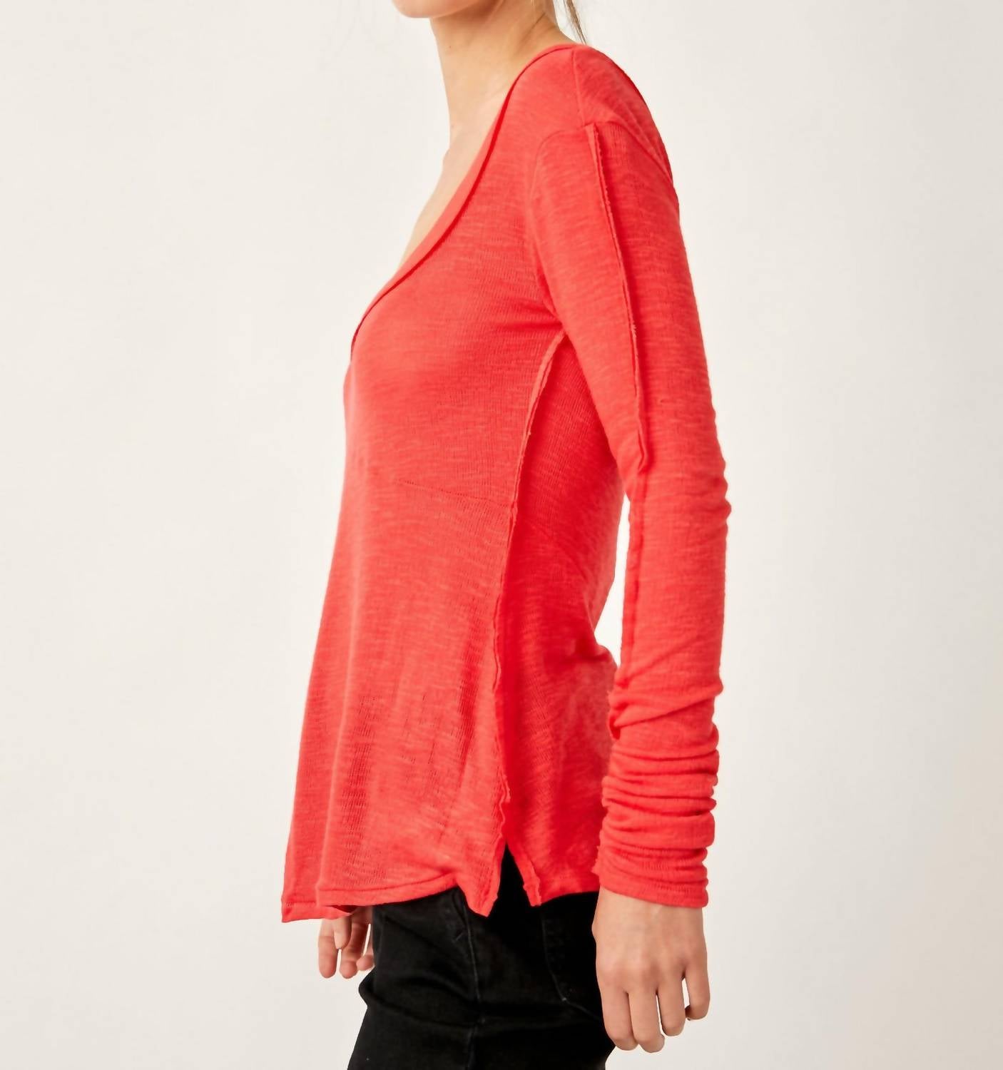 FreeThis Free People long sleeve layering top is perfect for colder weather. Made with high-quality materials, it provides warmth and comfort, making it a must-have in any wardrobe. Its versatility allows it to be worn on its own or layered under other clothing.