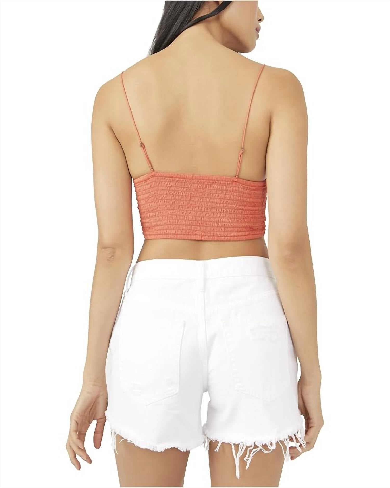 Elevate your lingerie collection with the Free People Carrie Embroidered Longline Bralette in Lip Gloss. Crafted with a shell of 100% cotton and a lining of 95% viscose, 5% spandex, this piece offers a slim fit with lace eyelet details for added flair. Featuring a V-neckline and thin adjustable straps, it ensures a comfortable and precise fit thanks to the smocked back. Closure is styled as pull-on, and it's machine washable for convenience. Imported.