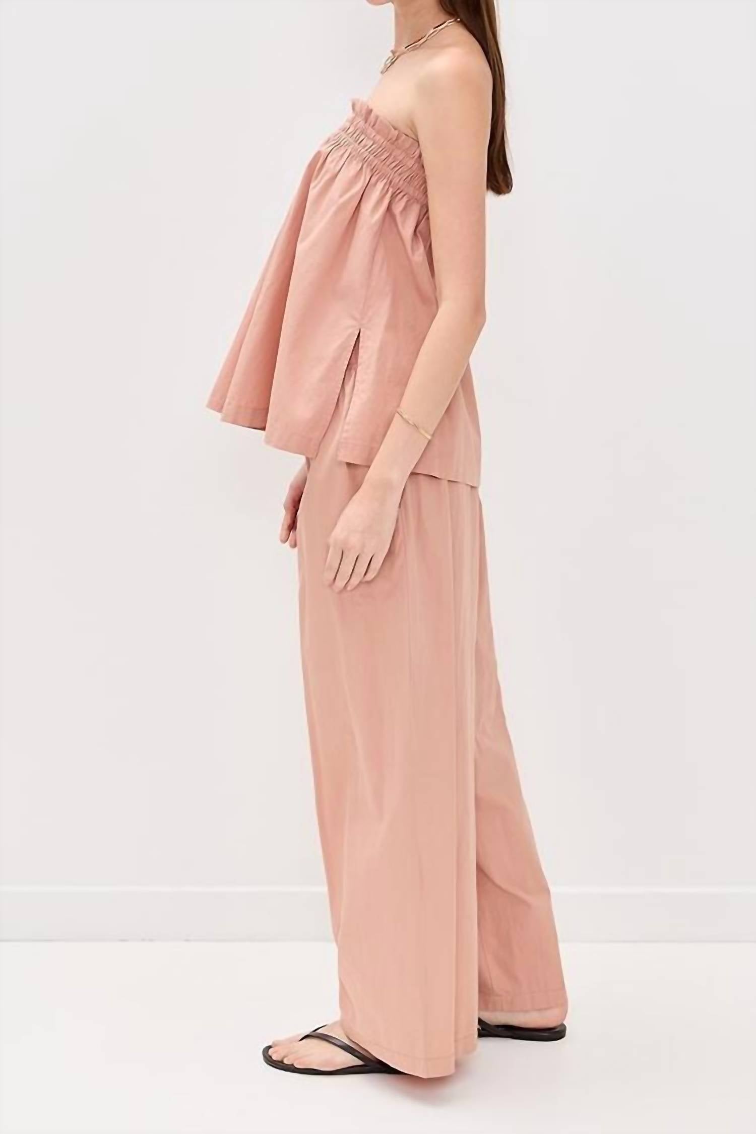 Embrace effortless style with the Corfu Tube Set by Free People, perfect for your next getaway. This Tuscany-hued loungewear set features a strapless top alongside flowy, wide-leg pants with a convenient drawstring waist and side-seam pockets. Expertly crafted from 100% cotton for a breezy feel, this solid minimalist design offers comfort without compromising style. Care for your set by machine washing and line drying to maintain its fresh appearance.