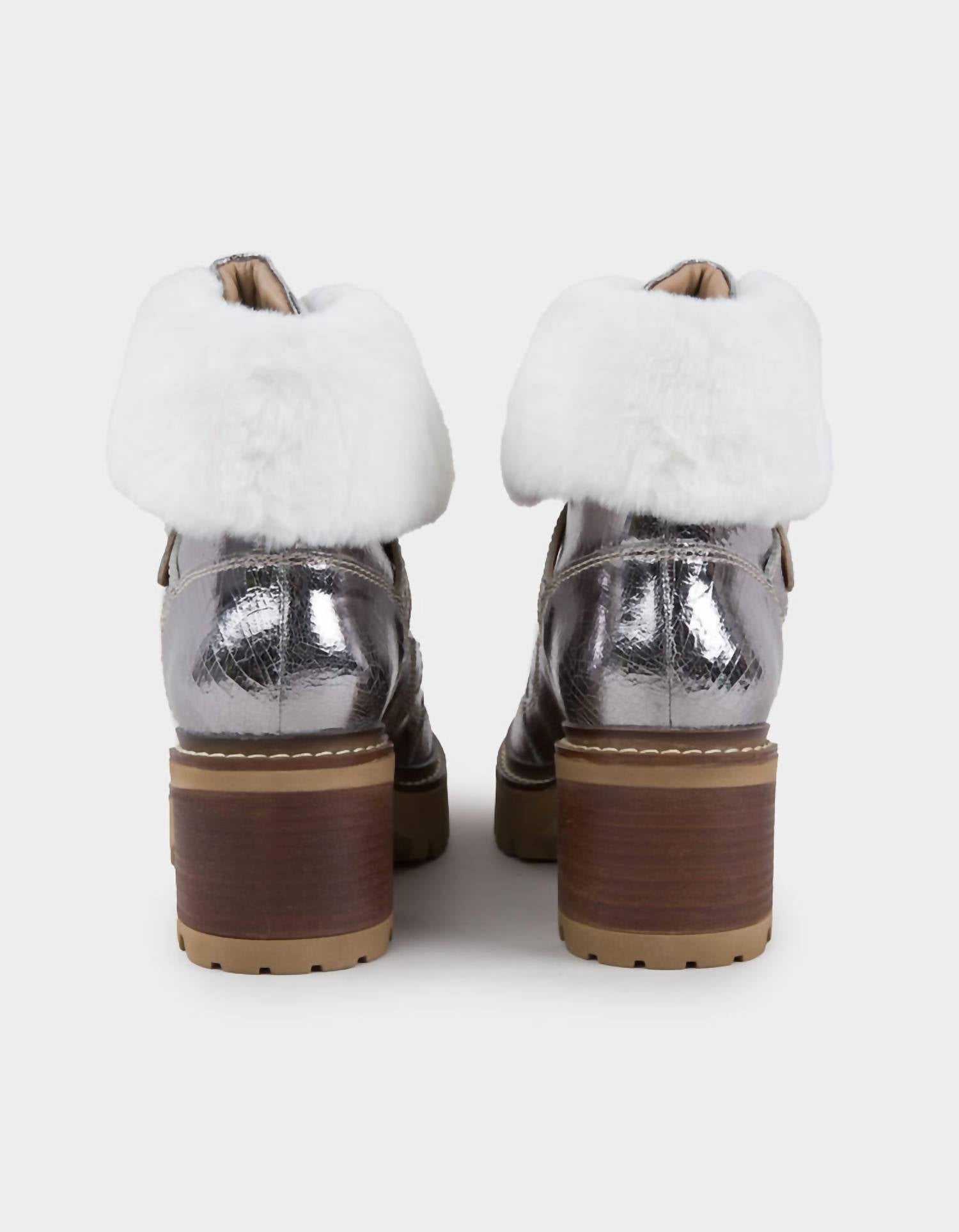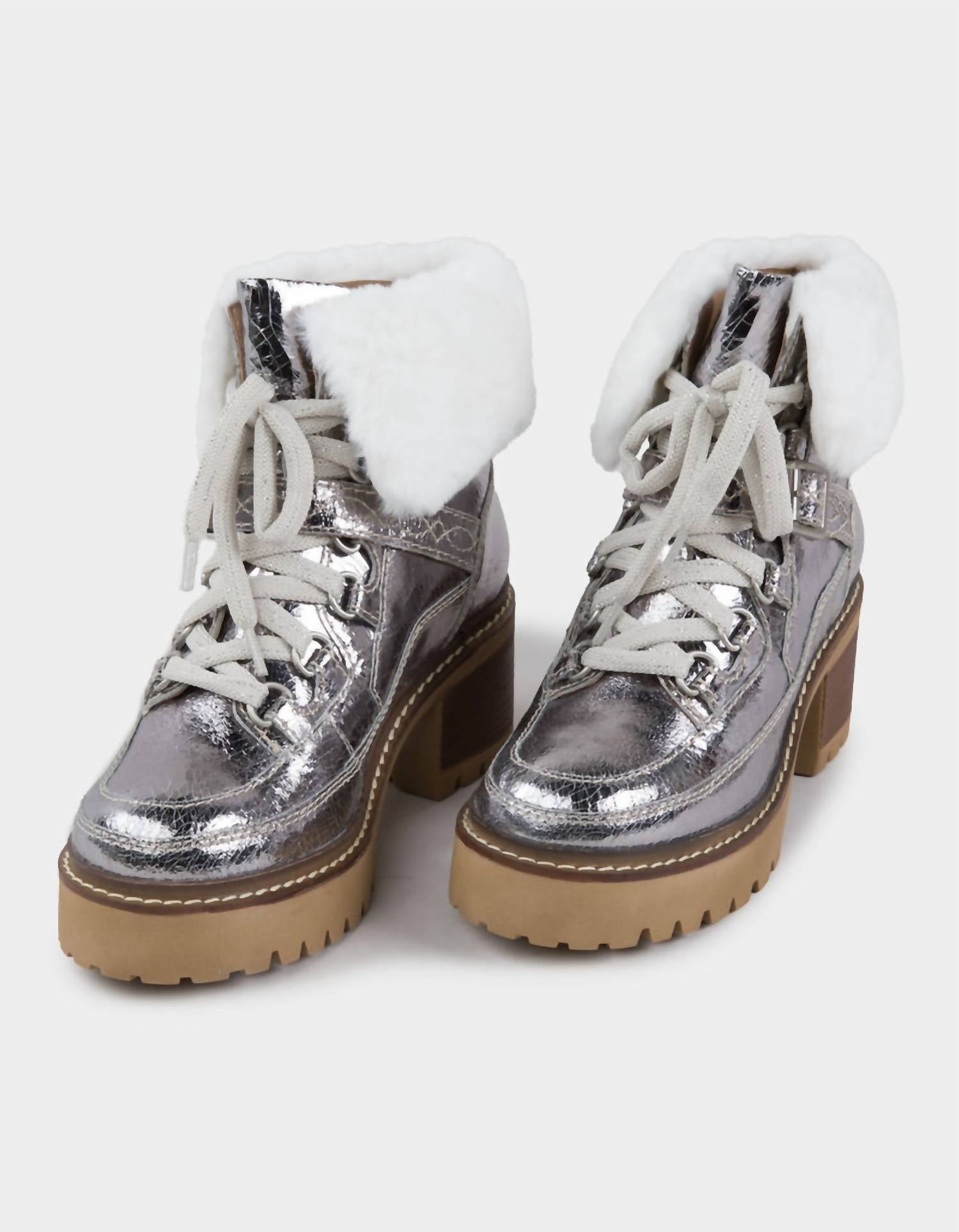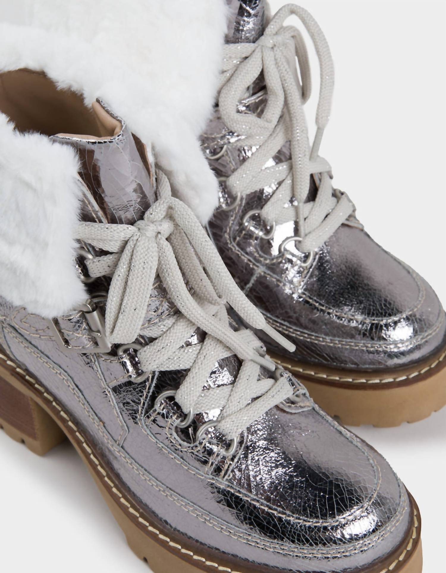 Say hello to the perfect, most versatile boot. The ankle height makes this style easily transition from day to night. Wear them with your favorite skinny jeans and tee for a more laid back look, or pair them with your favorite mini dress and jacket for a night out on the town. Introducing the Cozy Jasper Hiker Ankle Boot by Free People, a perfect blend of robust style and comfort. These boots, crafted from luxurious leather in a unique Pewter Cozy shade, offer a trendy ankle-length silhouette. The design features accentuating contrast stitching, a D-ring lace-up closure with two pairs of thick laces, and a durable platform sole with a stacked block heel. An ideal choice for fashion-forward women, these boots promise both durability and style for adventurous outings.