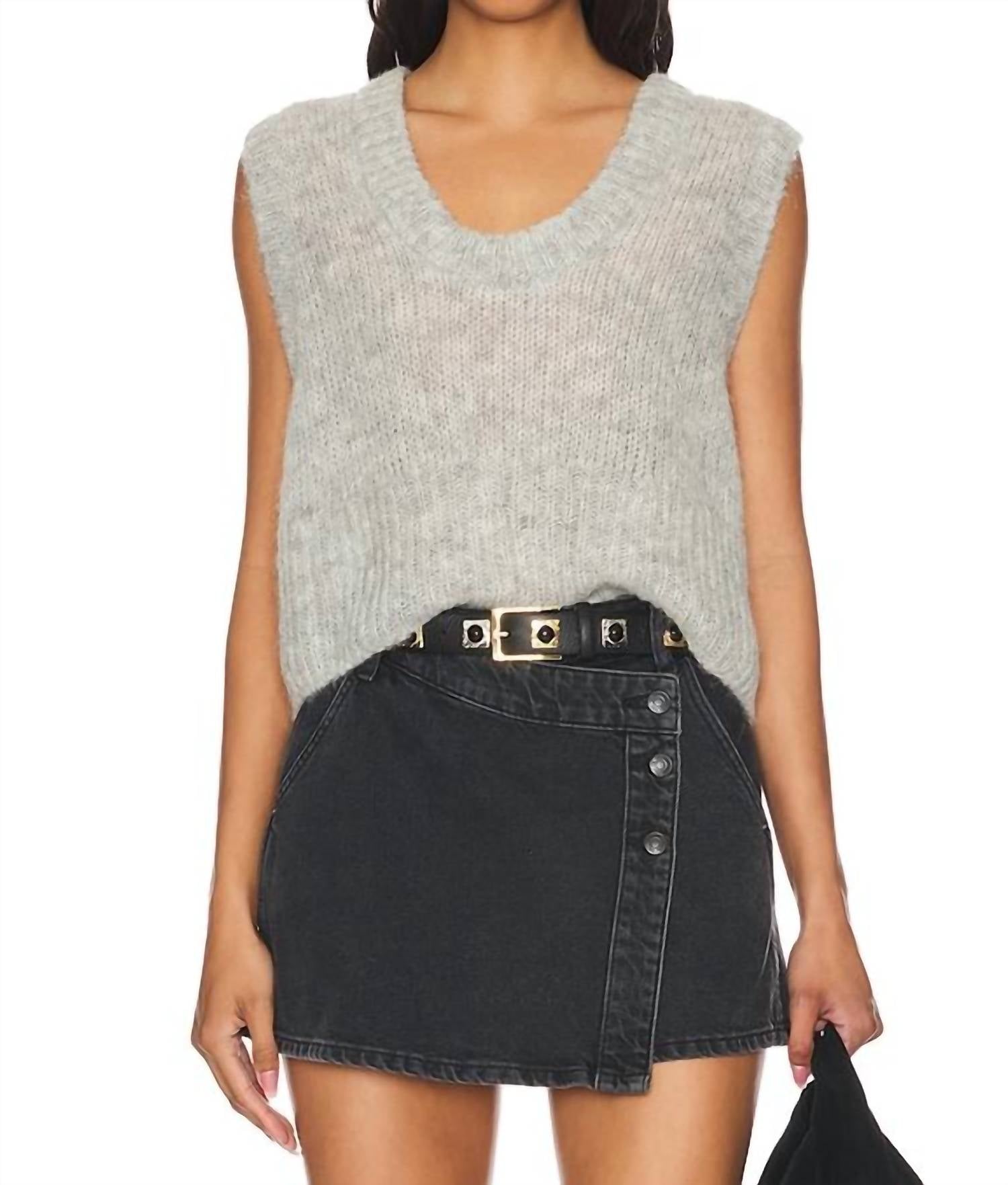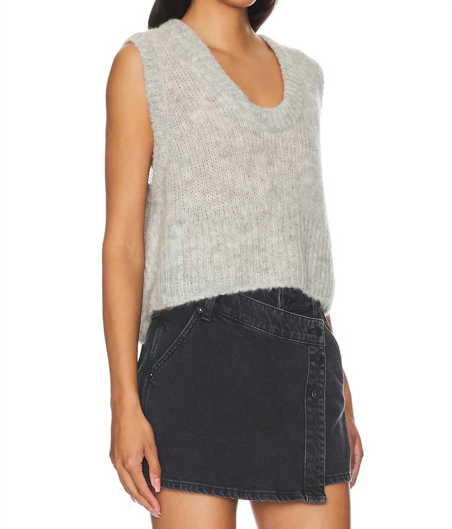 The ultimate go-to sweater, expertly crafted to provide the perfect combination of warmth and style. Its classic design and soft fabric make it a must-have addition to your wardrobe. Discover the Dream Maker Vest by Free People, an elevated staple in heather grey for the modern wardrobe. This sleeveless vest boasts a soft knit composition of 89% Alpaca and 11% Polyamide, offering a boxy, slightly cropped silhouette that pairs perfectly with any layered look. Made in an import style with ribbed knit trims, it features a low scoop neckline and low-cut armholes for a relaxed fit. Care: Hand wash cold. Closure: Pull on. Measurements for size small include a bust of 40 inches (101.6 cm) and a length of 19.25 inches (48.9 cm).