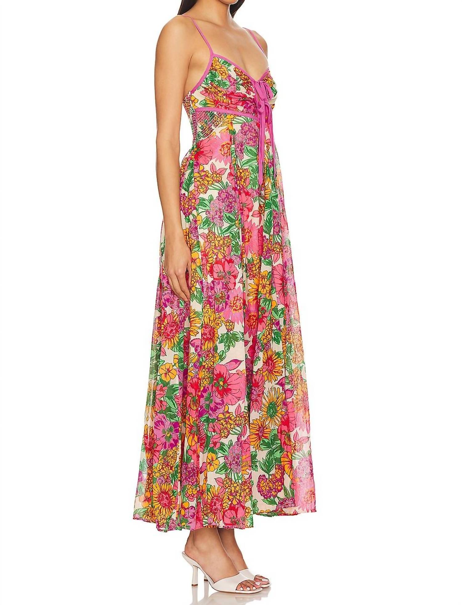 Made from lightweight cotton with a rayon lining, this dress from India features a pull-on style with adjustable shoulder straps and a front tie detail. Maxi style. Machine wash cold for easy care.