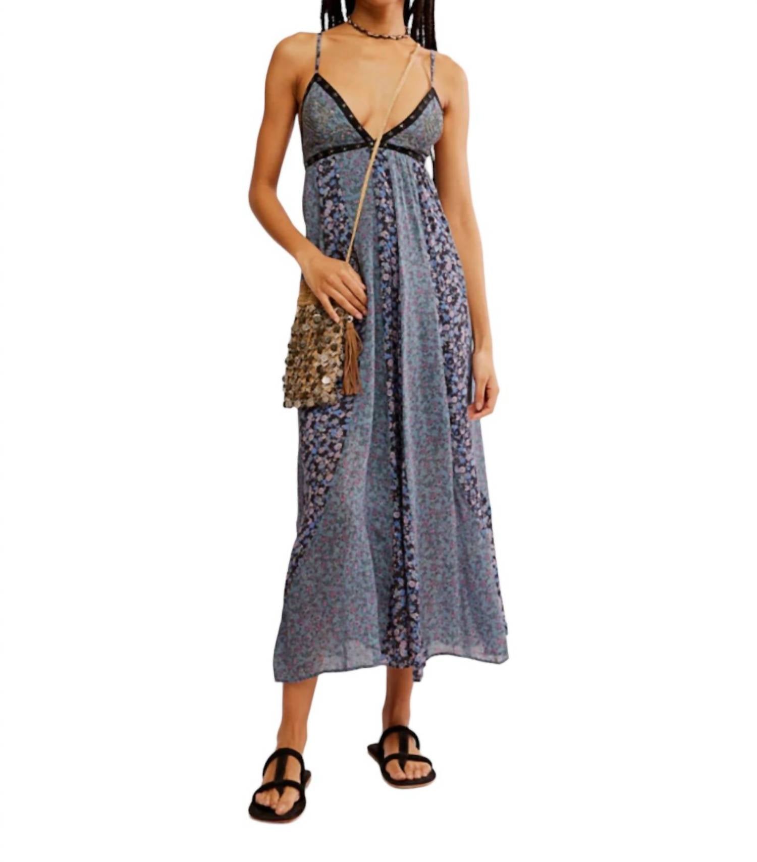 Boho pattern. Midi dress. Beaded detail. Super soft. Skin-friendly. Durable, Breathable and comfortable. Flowing print. Satin spaghetti strap. Sleeveless and backless with hollow-out design. V-neckline. 100% Polyester.