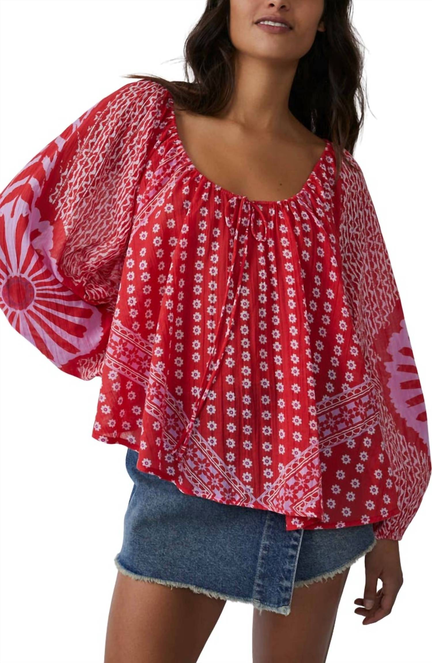 A boho-inspired top woven from lofty cotton makes a summery statement with its lively allover floral print.Scoop neckLong sleeve100% cottonMachine wash, tumble dry