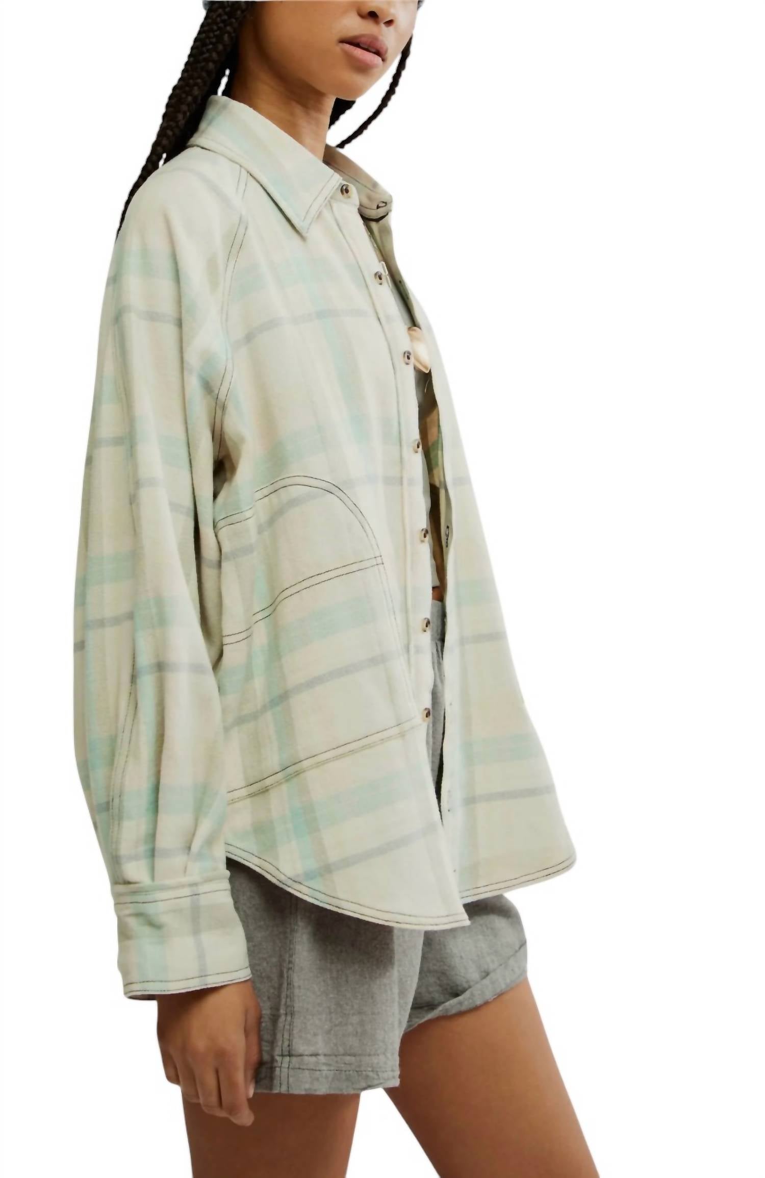 This Plaid Shirt is a slouchy, oversized button-down with long sleeves, a collared neckline, raglan sleeves with cuffs, and practical pockets. Made from 100% cotton, it’s comfortable and machine washable.
