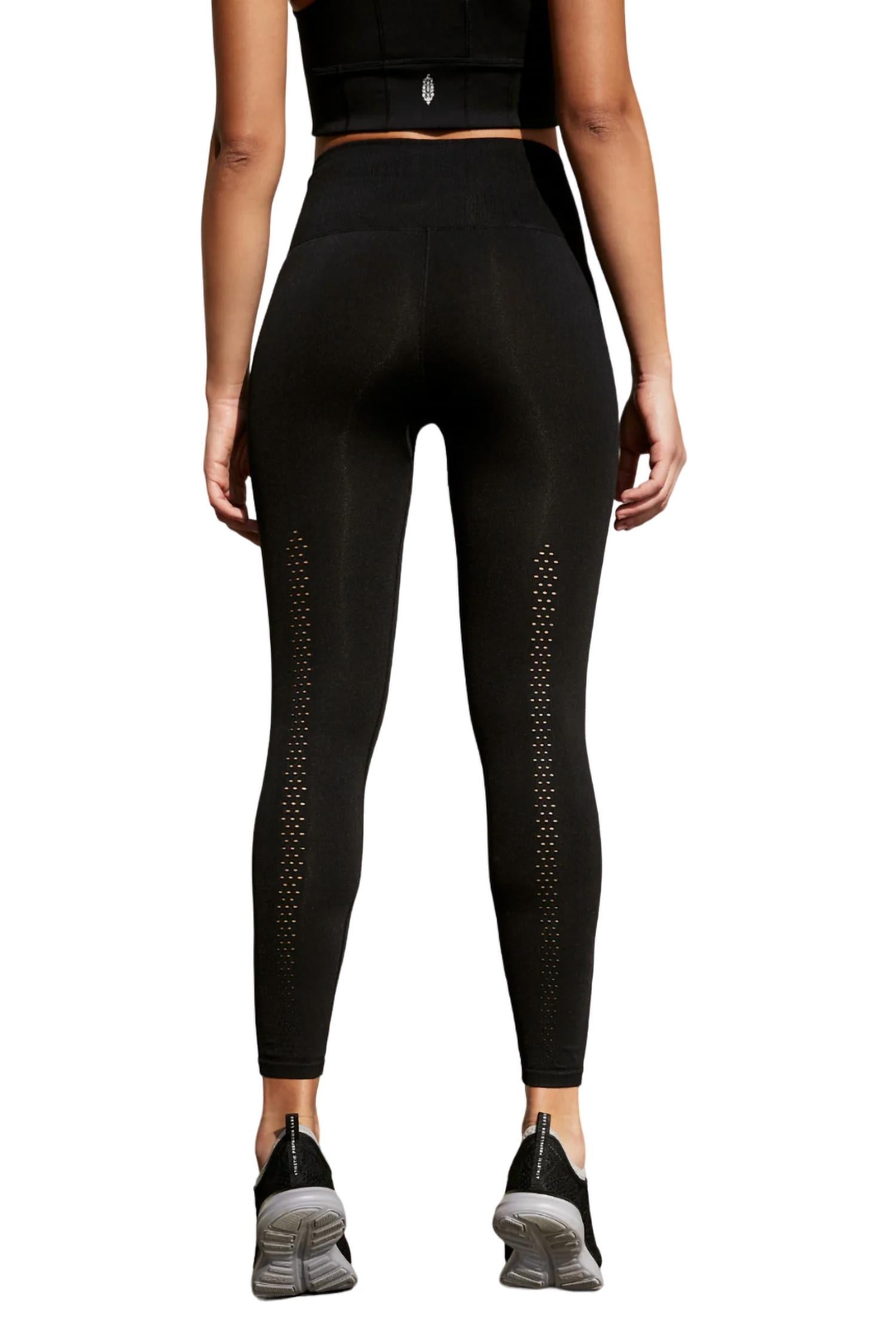 High-rise waist, full length leg. Super-soft, holds-you-in waist, signature ribbed waistband. Breathable pinhole details. SPF 30 UV protection. Machine wash cold. Made in the USA.