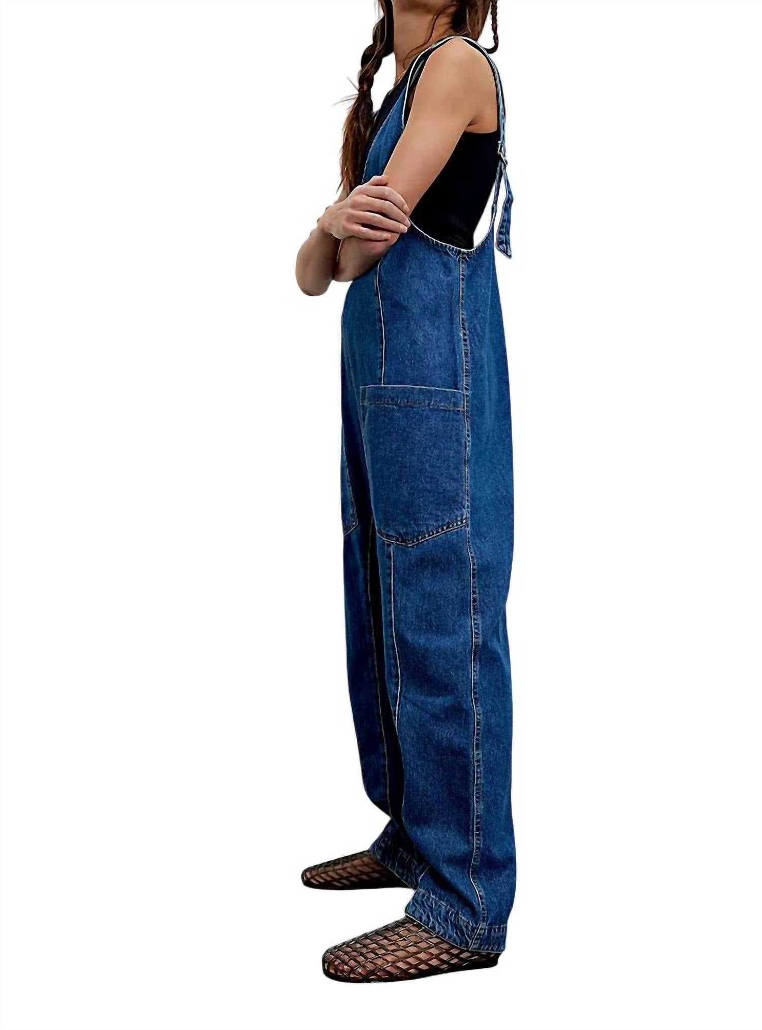 Who doesn't love a good pair of overalls? Elevate your style with the Sapphire Blue High Roller Jumpsuit by Free People. This activewear piece offers a relaxed fit with a wide leg design, crafted from 100% cotton for ultimate comfort. It features a pull-on closure and textured pattern, complete with pockets for added functionality. With an inseam of 27 inches and a rise of 23.62 inches, this versatile jumpsuit is perfect for making a bold statement at any occasion. Care for it with ease by machine washing.