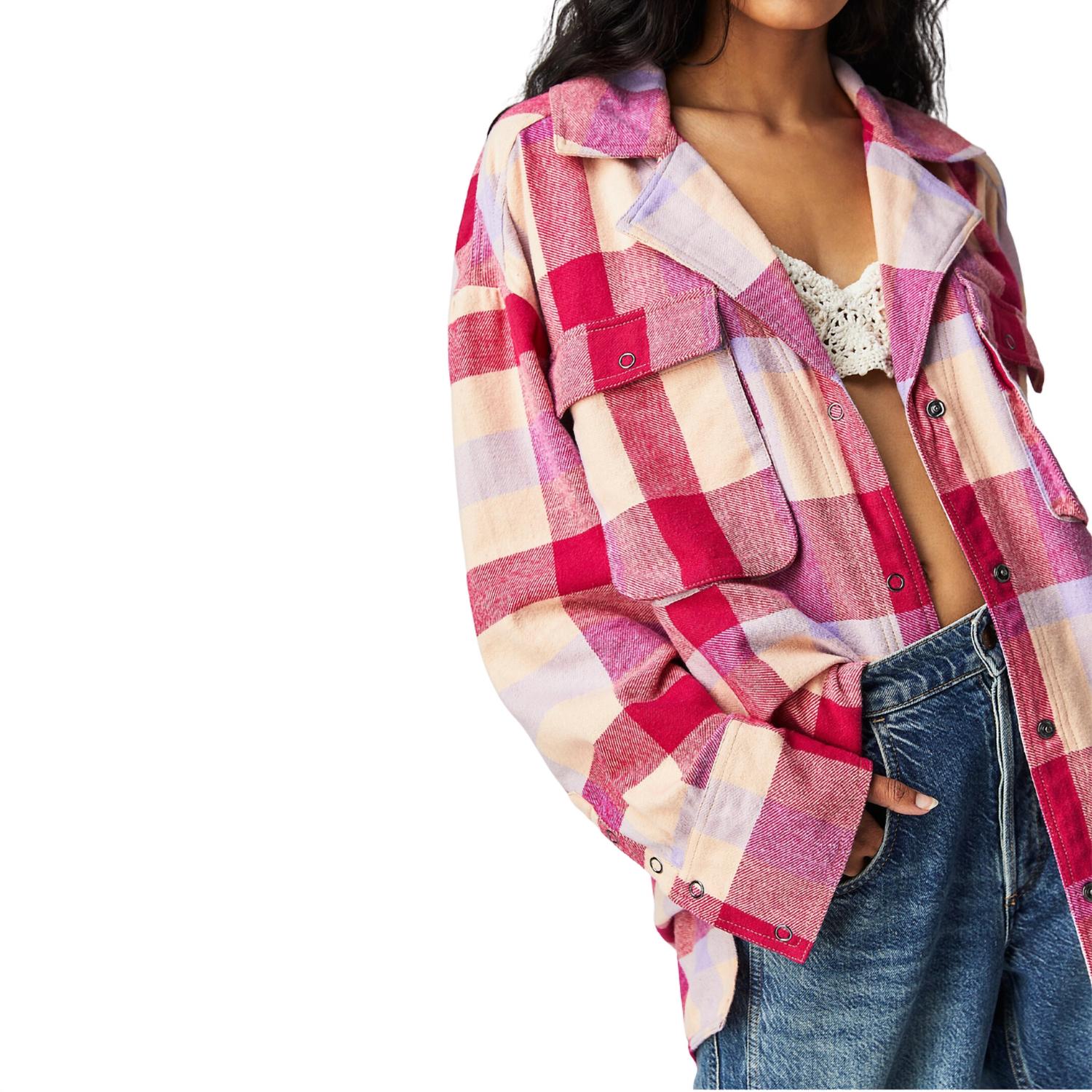 This timeless plaid shirt in red and brown has an easy, oversized fit that is relaxed and carefree! Enhanced staple style with lower back hemline, defined collar, button front fastening, and breast patch pockets in the cargo style.