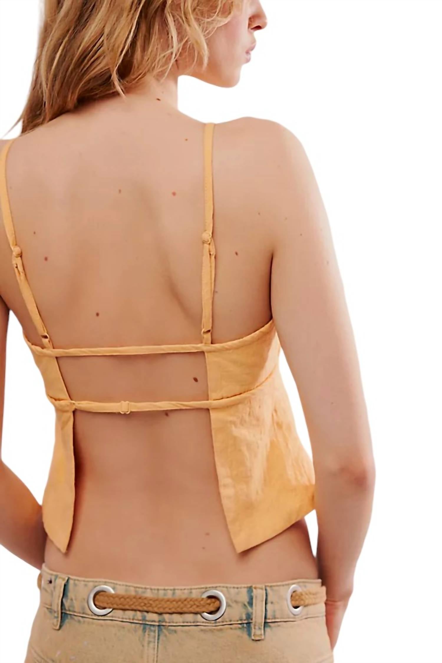 A slim-fitting silhouette with a high neckline and strappy open-back. Flattering seam detail and adjustable fit with thin shoulder straps. 62% Cotton, 18% Linen, 18% Rayon, 2% Elastane. Machine wash cold, gentle.