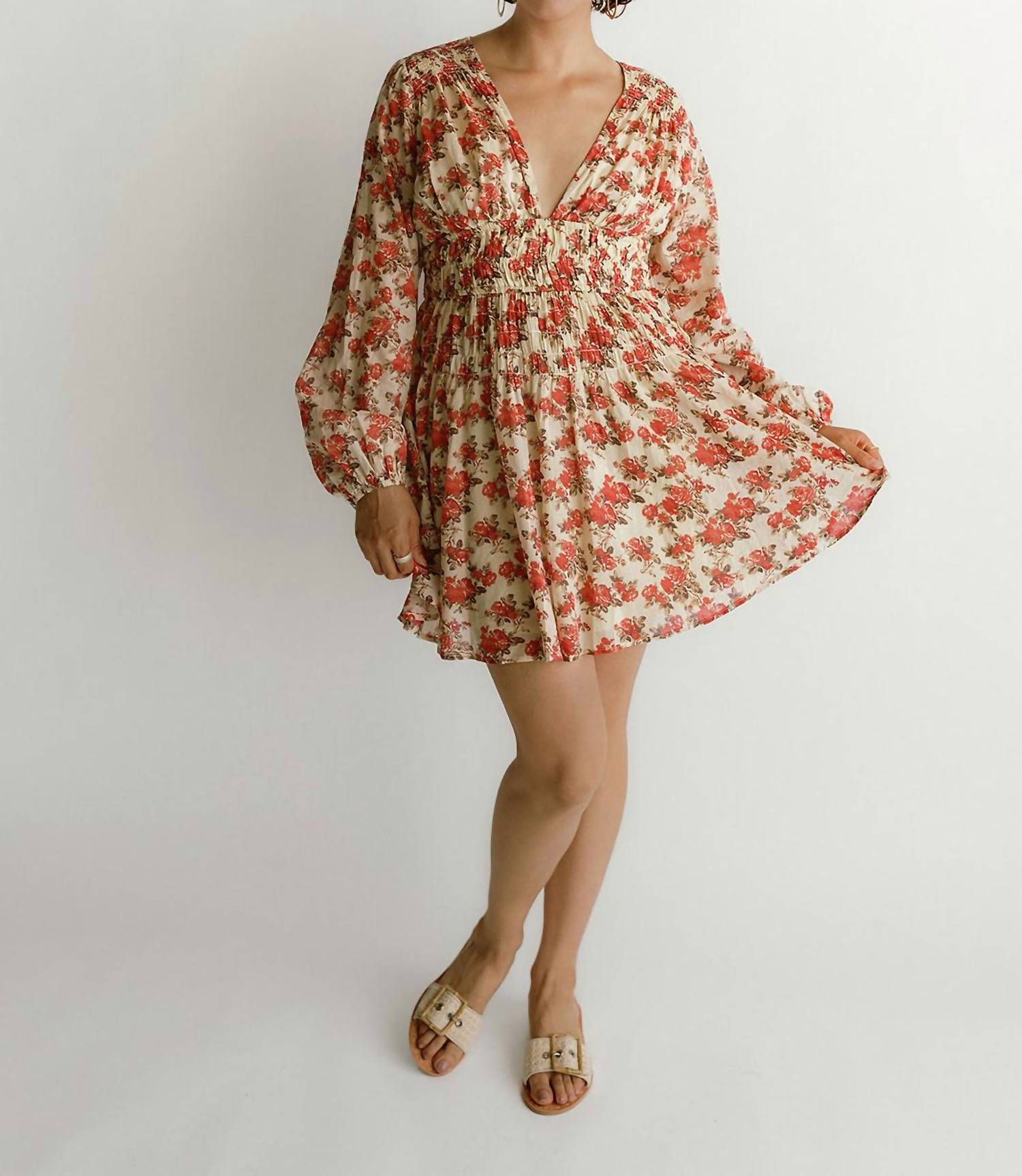 The perfect mini dress for those warmer months. Introducing the Keep You Mini Dress by Free People, a versatile piece designed for endless styling possibilities. Crafted from soft cotton, this multicolor floral dress boasts a flattering A-line silhouette with a deep V-neckline. It features long balloon-inspired sleeves and a smocked band for added charm, complemented by a back keyhole cutout with button closure. Care: Machine wash.