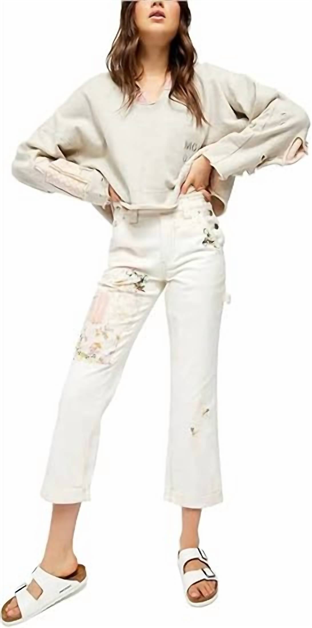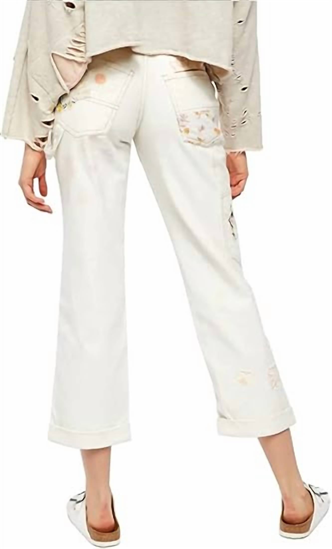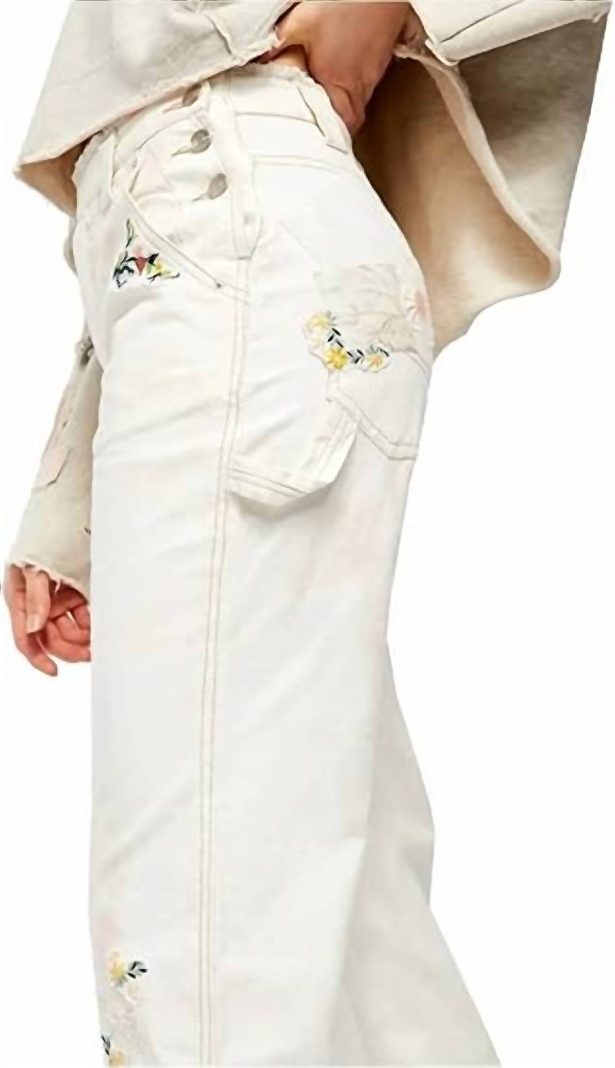 Vintage-inspired jeans from our We The Free collection featuring floral embroidery in a high-rise, slouchy silhouette. Five-pocket style. Side button placket. High-rise silhouette. Inseam: 29 in. Waist: 31 in. Rise: 11.5 in. 100% Cotton.
