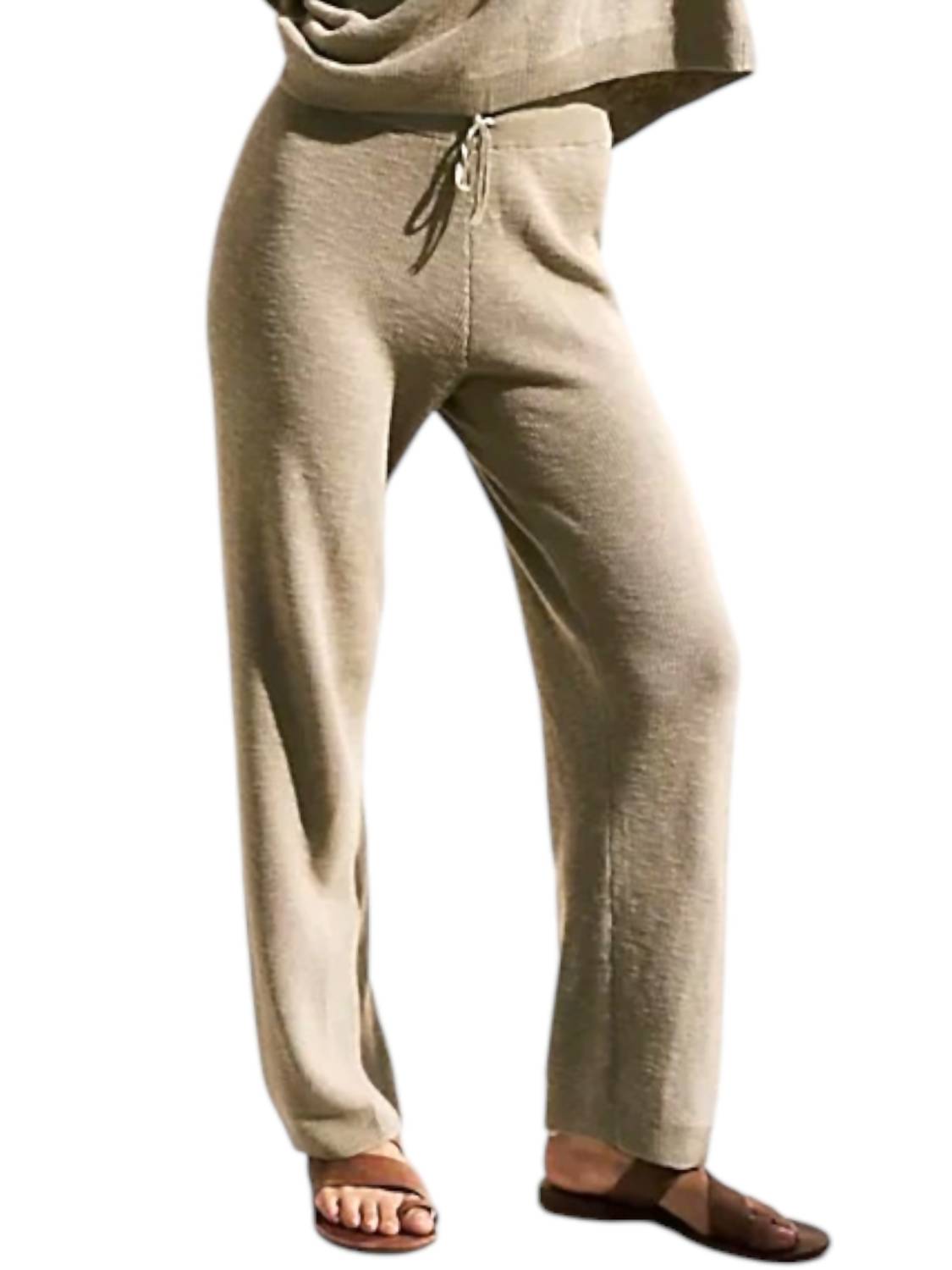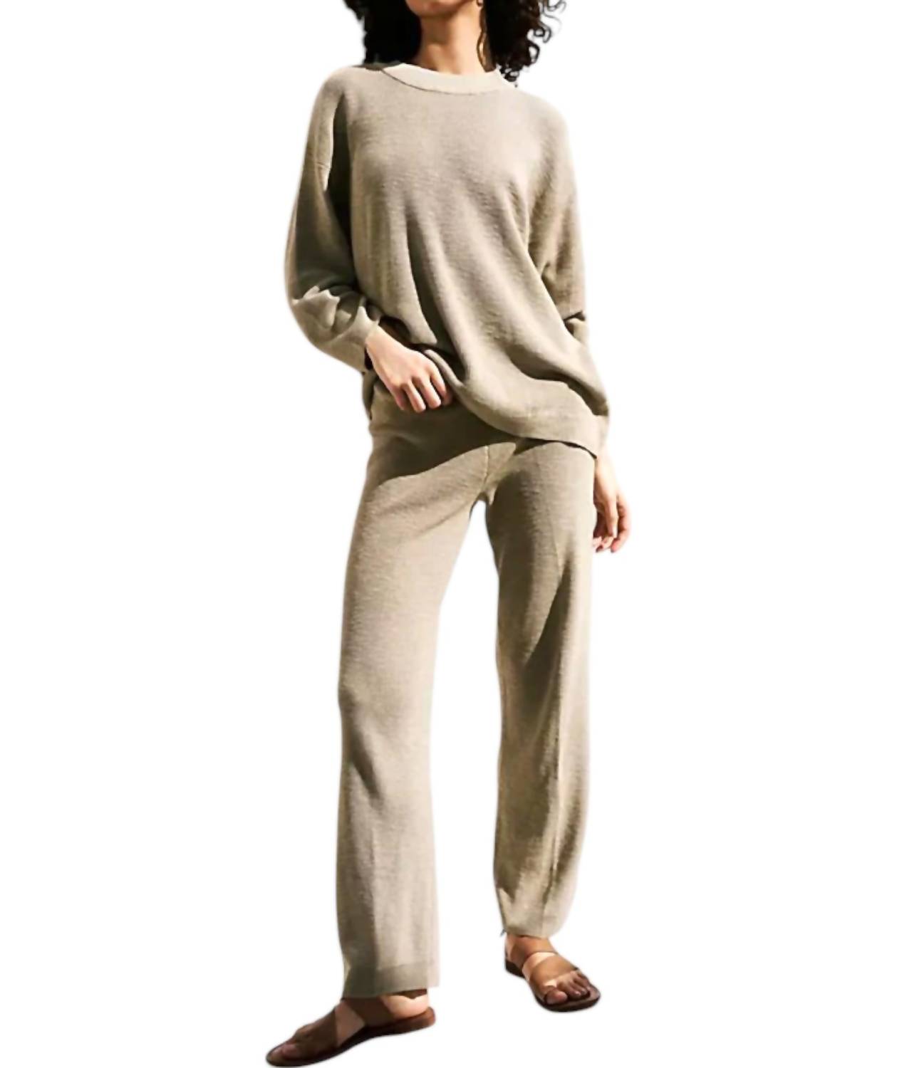 Relaxed top with crew neckline and dropped shoulders. High-rise pants, wide-leg with pull-on design and drawstring. Textured, free-flowing fabric for versatile styling. 46% acrylic, 54% cotton. Hand wash cold.