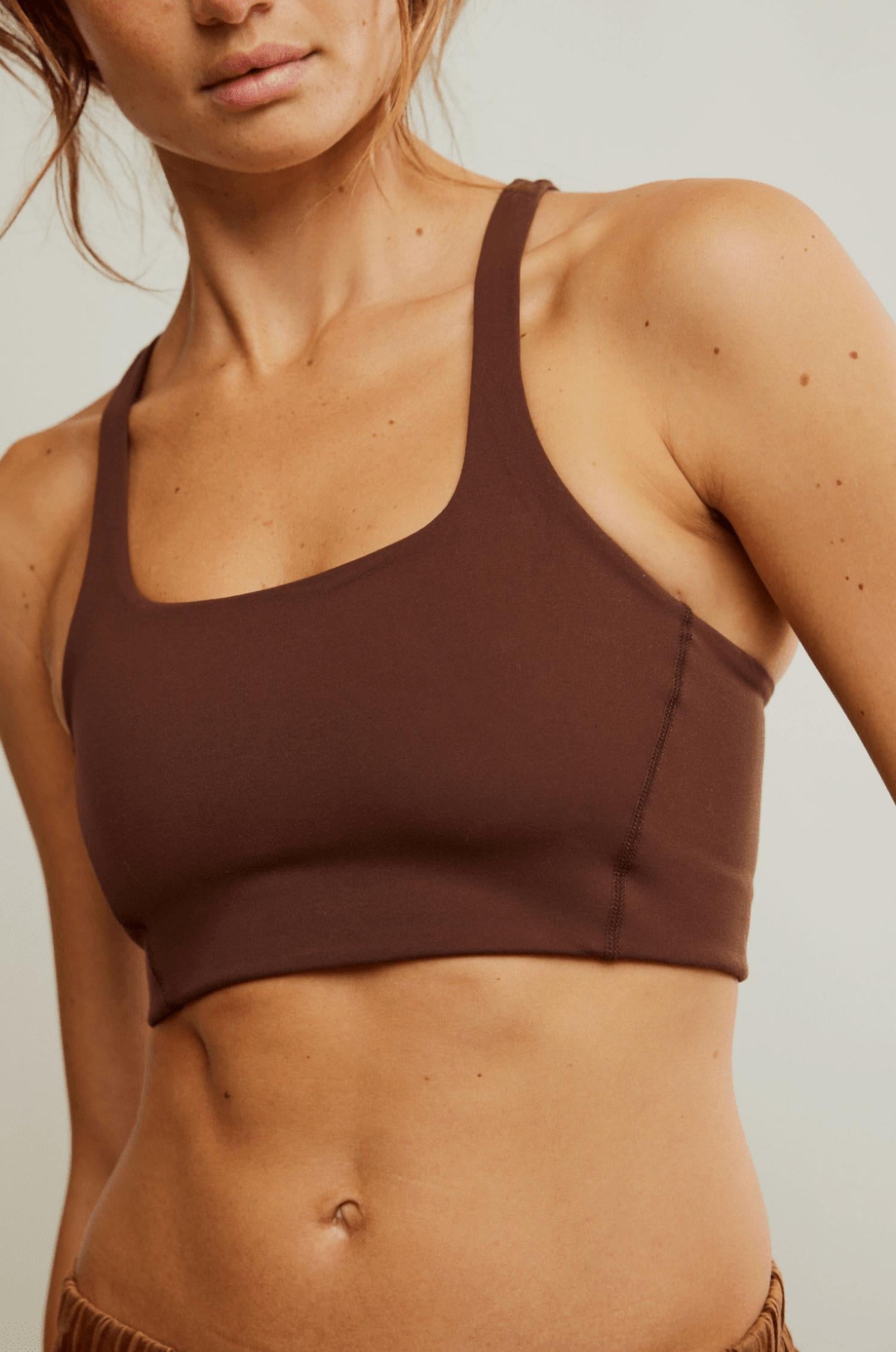 A sports bra that has it all - style, function and support. Introducing the Never Better Square Neck Bra by Free People, a sleek and sporty staple for every active wardrobe. Designed for ultimate comfort, this pull-on, cropped sports bra in Cocoa features thin fixed shoulder straps, a square neckline, and a V-shaped back. Made from buttery soft Polyamide, it boasts a stretchy feel, supportive underband, and breathable design, making it perfect for yoga or studio workouts. Easy to care for, just machine wash as needed. Ideal for those who love athleisure trends.