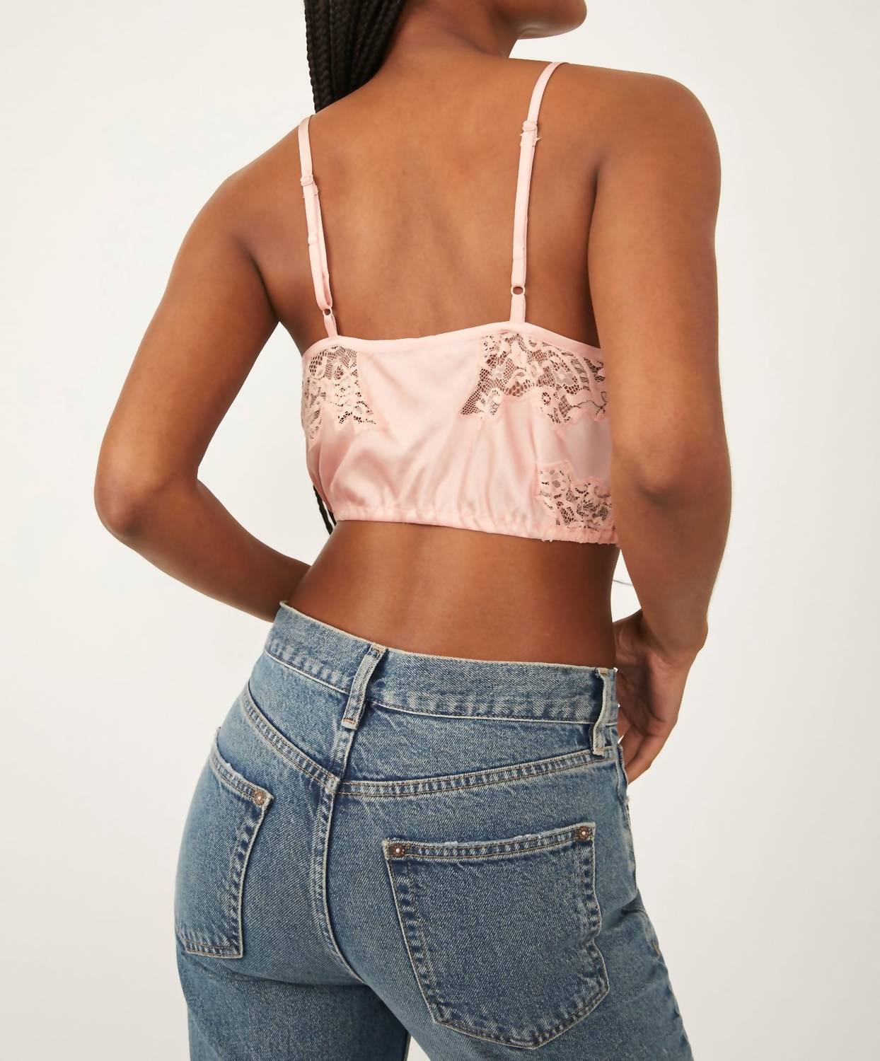 100% Polyester. Silky and sultry brami featuring a sweetheart neckline with eyelash lace trim and banded hem for a billowy silhouette. Adjustable straps. Lace piecing throughout. Cropped design. Hand Wash Cold. Imported.