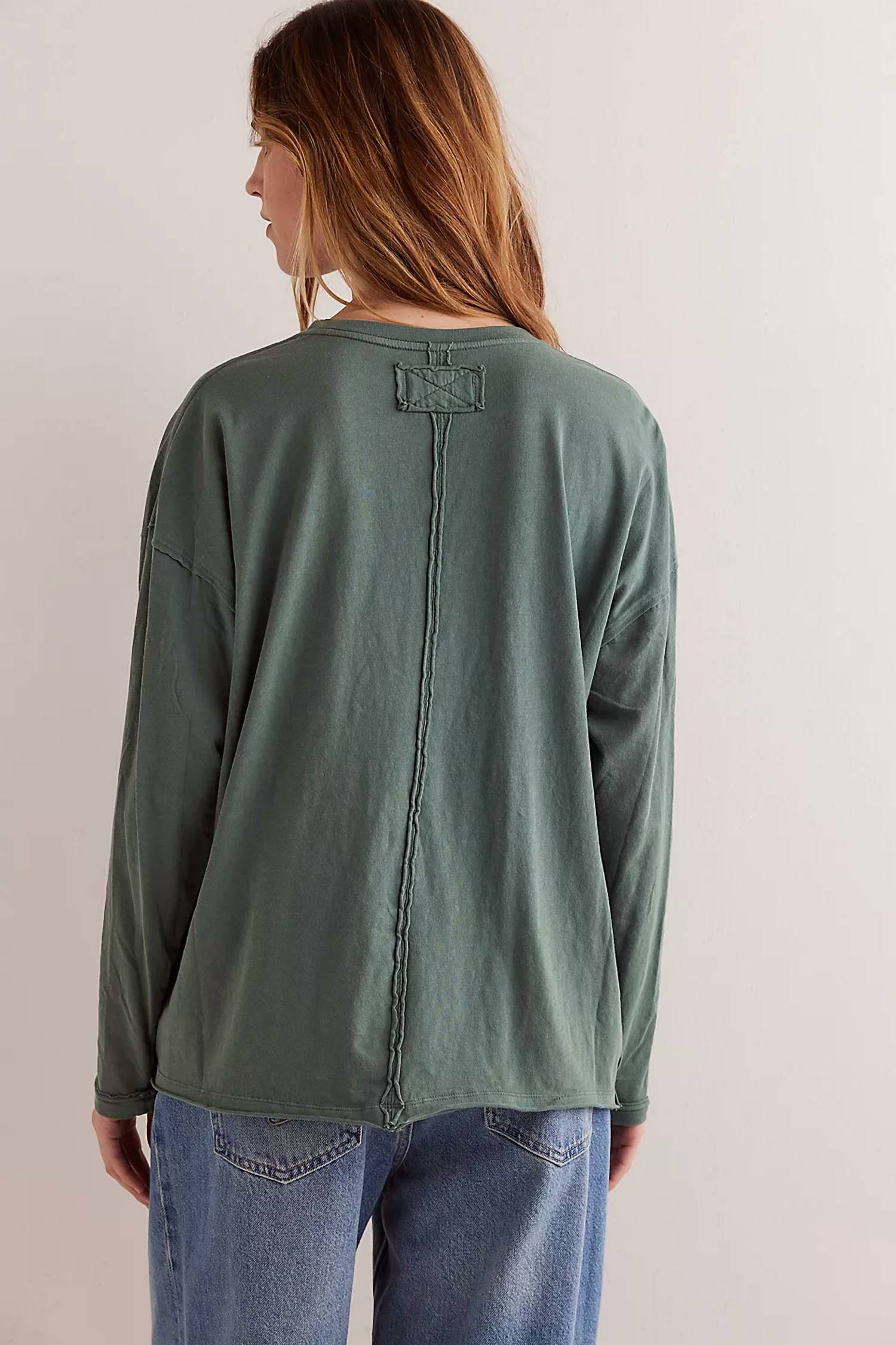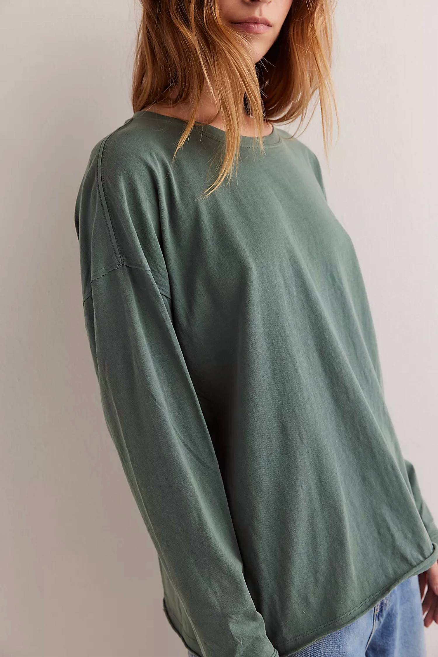 The perfect long sleeve tee that goes with just about anything. Offering a boxy, slightly oversized fit. Crafted from 100% cotton. Long sleeve tee in Topiary. Features a crewneck and drop-shoulder sleeves for effortless style. Exposed seam detailing. Pulls on for easy wear. Machine wash cold.