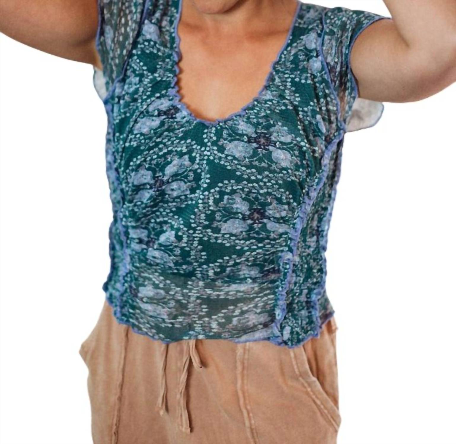 Meet the Oh My Baby Tee Top by Free People, a nostalgic piece that channels retro flair with a modern twist. This short sleeve knit top boasts a ruched design and playful geometric pattern, crafted entirely from polyester for a comfortable fit. With a slightly cropped silhouette, it effortlessly complements both denim and skirts. Designed with a scoopneck and pull-on closure, this versatile blouse is gentle to care for with a cold wash and flat drying. Perfectly hued in Seagrass, it's a timeless addition to your wardrobe.