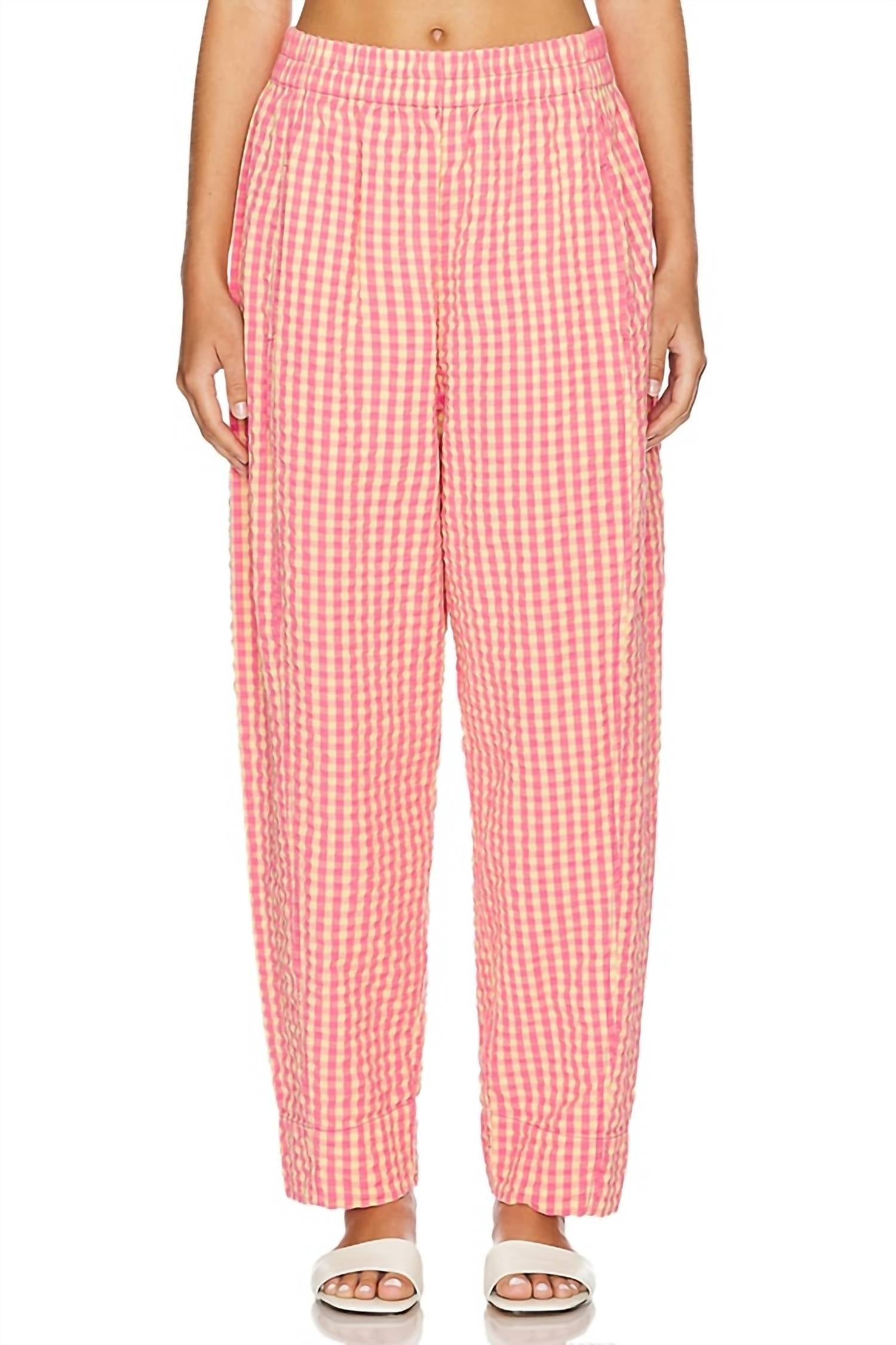 Effortlessly chic look and feel. Designed in a striking Pink Combo plaid and check pattern. Meticulously crafted with 100% premium cotton. Straight-leg pants bring a vibrant twist to classic style. Slip into comfort with the pull-on styling. Featuring an elastic waistband that ensures a snug yet flexible fit. Practical side seam pockets. Machine washable. As easy to care for as they are to wear. Made in India.