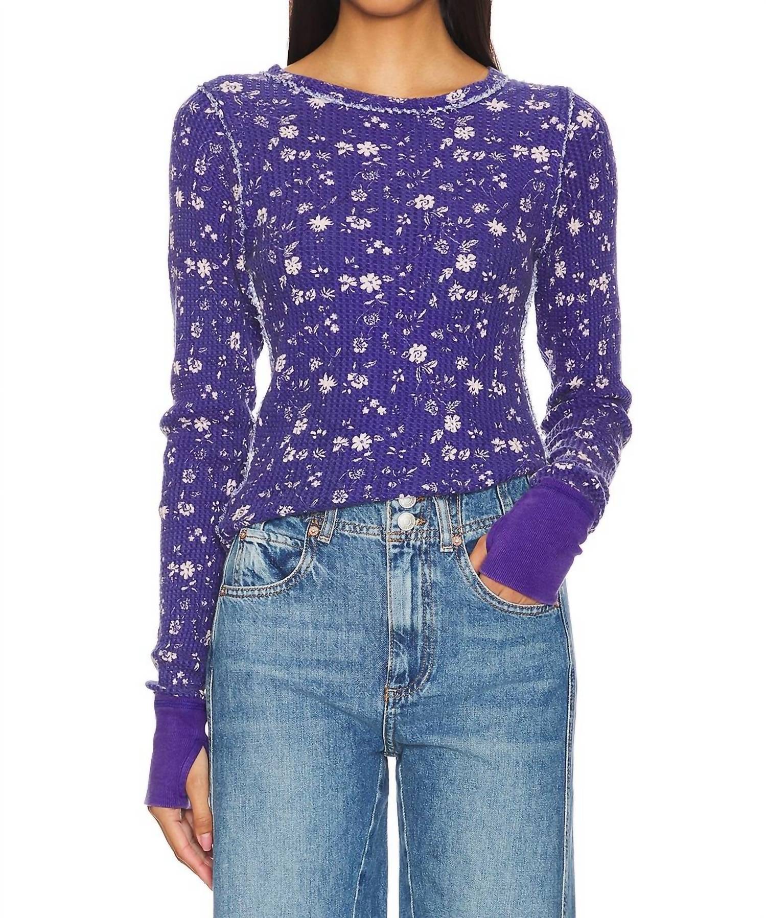 Great fit, cute design, soft fabric. You'll love everything about this long sleeve tee. Chic and trendy Navy Combo long sleeves. Exaggerated cuffs and thumbhole detail. Crafted from 100% cotton for a soft, comfortable feel. Made in Vietnam. Designed with a crew neckline, hip-length fit, and a round hemline with printed floral detailing. Closure is a pull-on style. Easily maintain it with a machine wash.