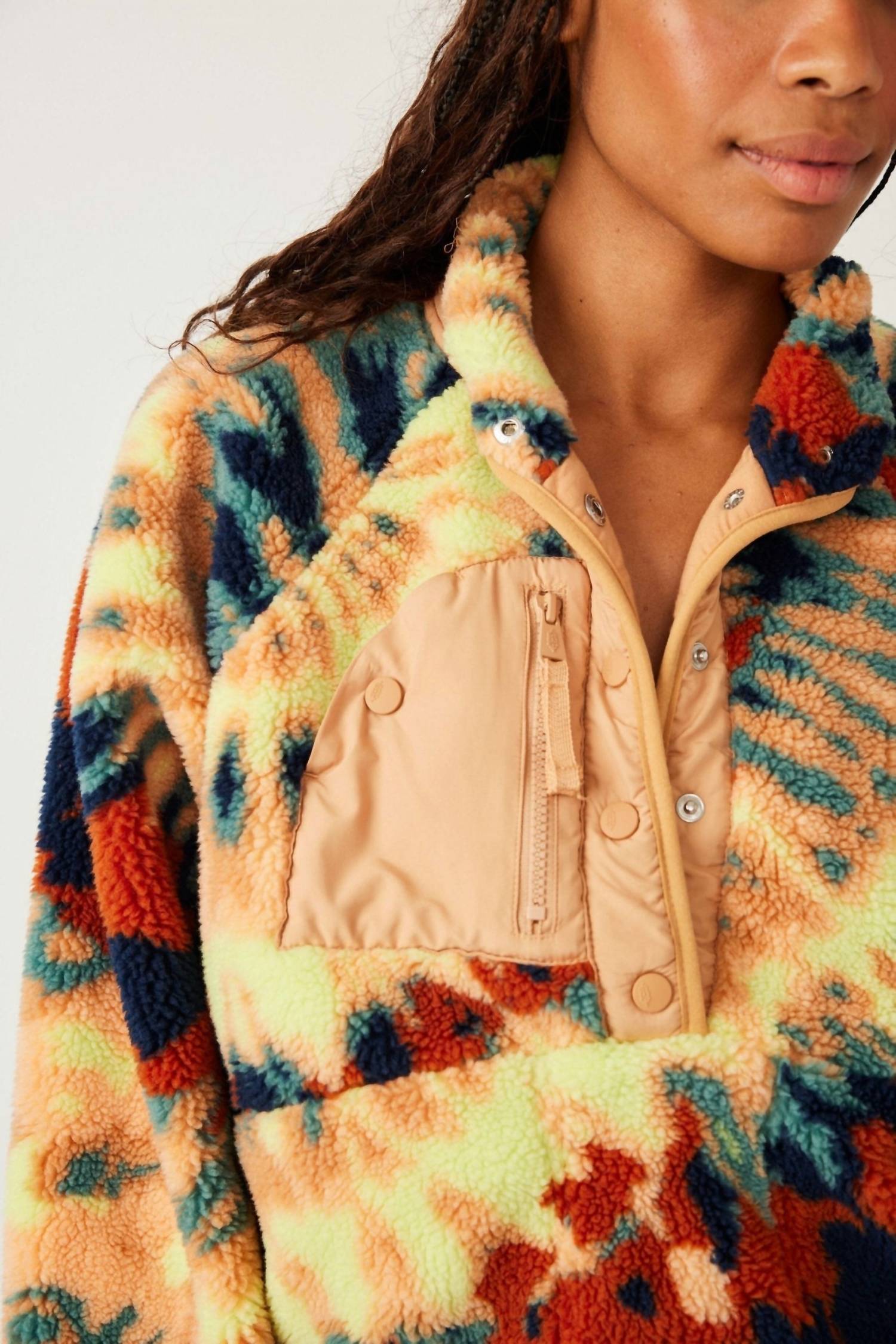 Cooler temps call for layering and we love this adorable sweatshirt for all the obvious reasons. This tie-dye piece showcases long sleeves and a stand collar with a practical front snap closure. Made from a cotton blend, it includes front zip pockets for added functionality. Care is simple with machine wash and tumble dry instructions.