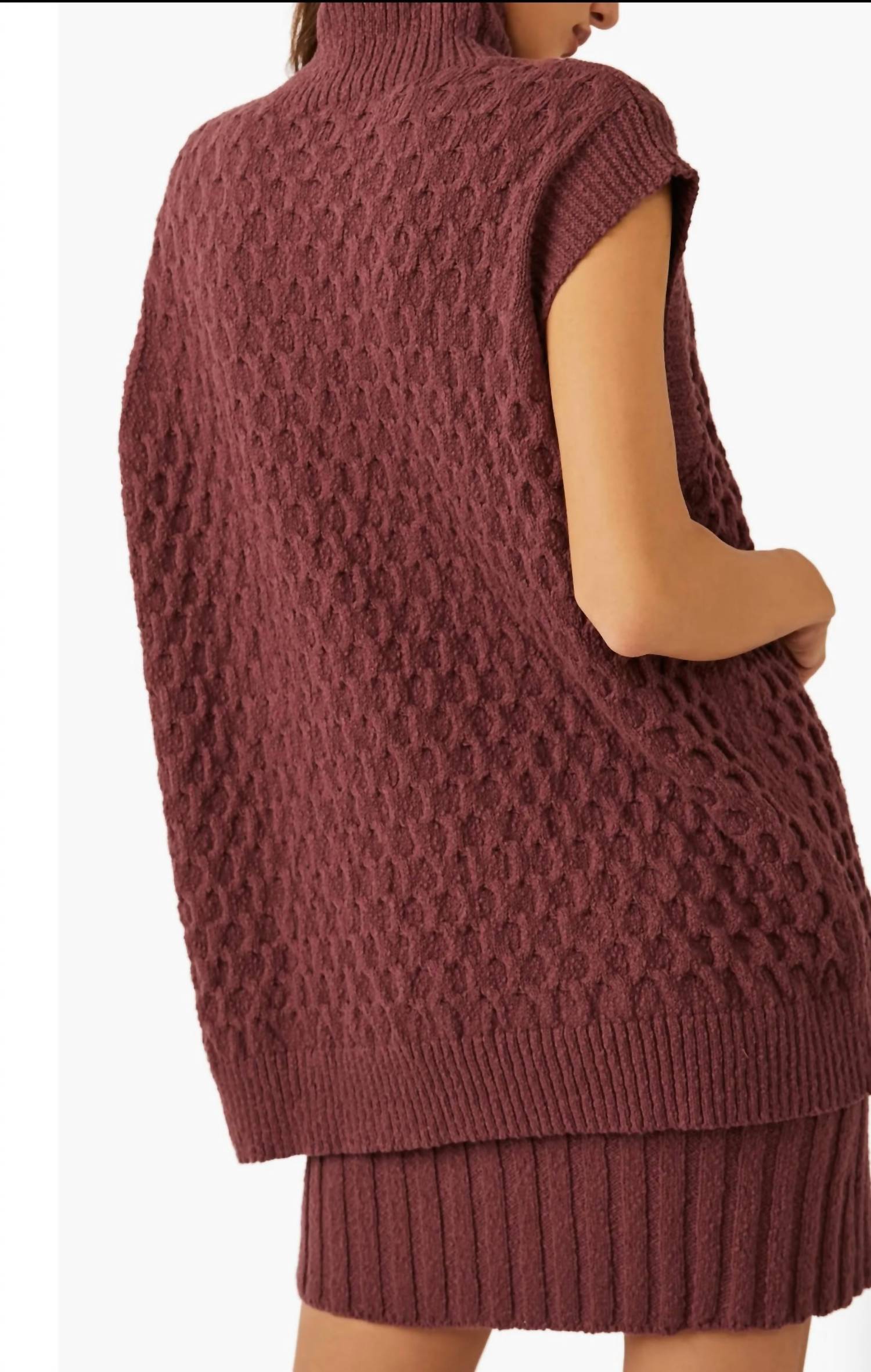 A classic staple that every closet needs. The Rosemary Set by Free People in Plum Jam is a chic addition to any wardrobe, combining style with comfort. This sleeveless sweater set features a relaxed turtleneck top with dropped armholes and ribbed hems, paired with a mini skirt in a wrap-inspired silhouette for added dimension. Crafted from breathable cotton with a stylish textured knit fabrication, it's perfect for layering or wearing on its own. With a convenient pull-on closure, this set is easy to wear, while its hand wash care ensures long-lasting quality.
